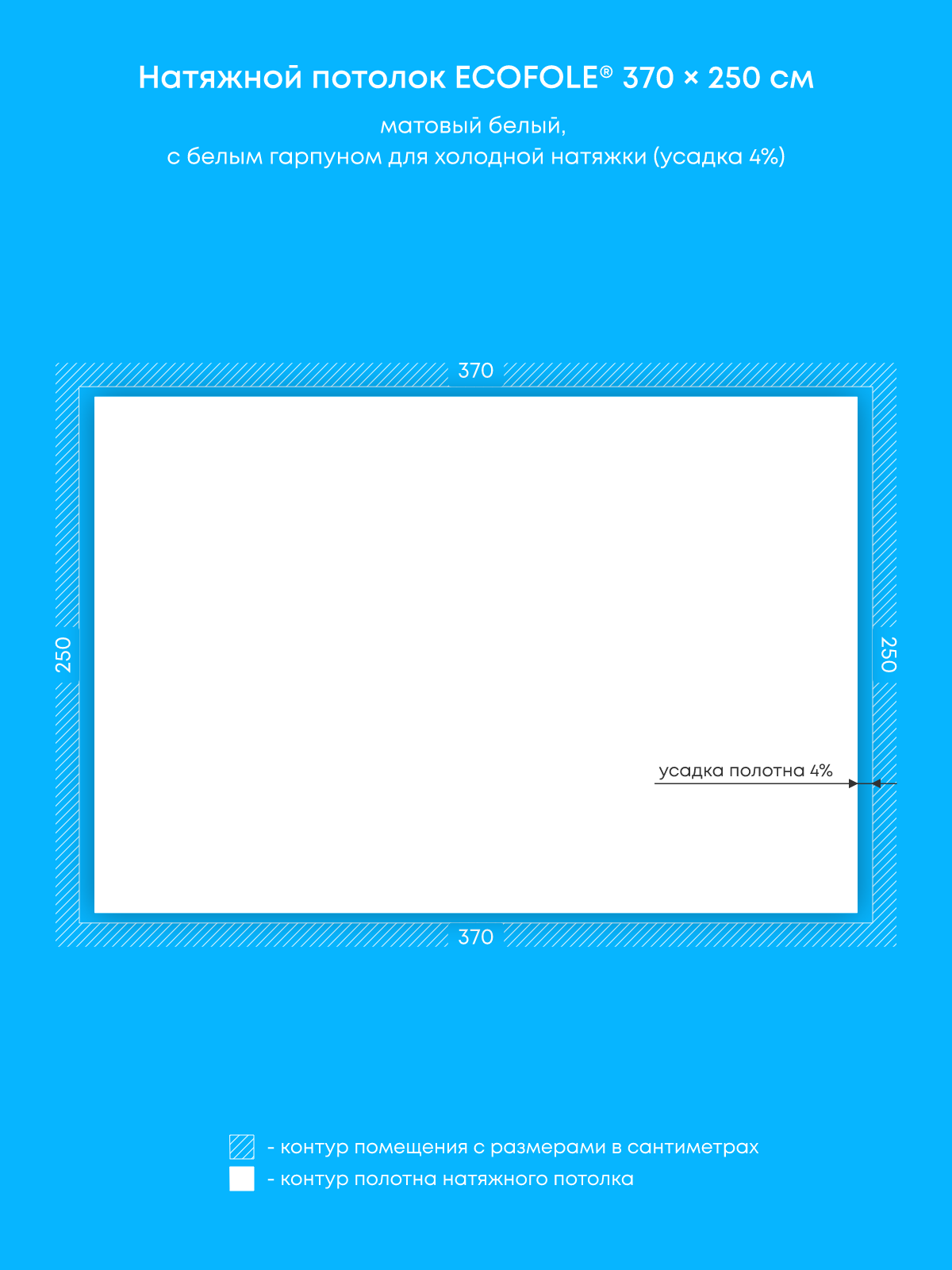 Натяжной потолок белый матовый, холодной натяжки, изготовленный по индивидуальным размерам покупателя, для помещения площадью 9.3 м2