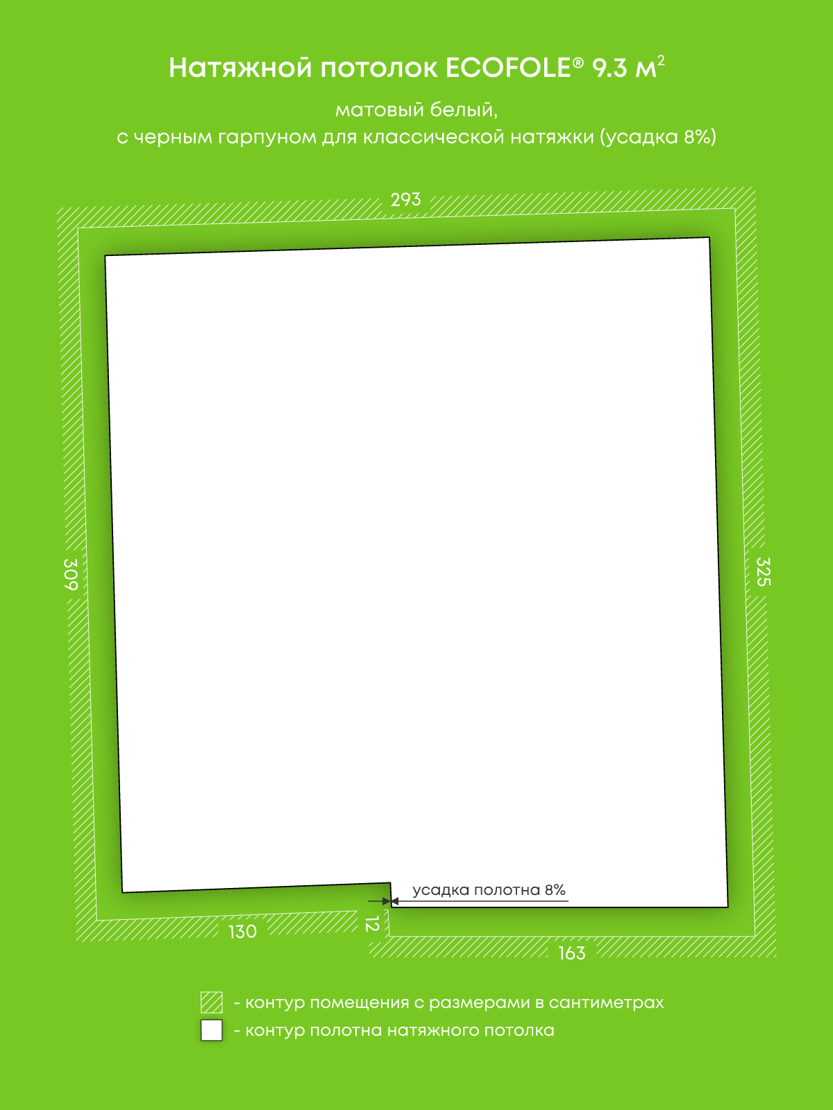Матовый натяжной потолок 9.3 м2
