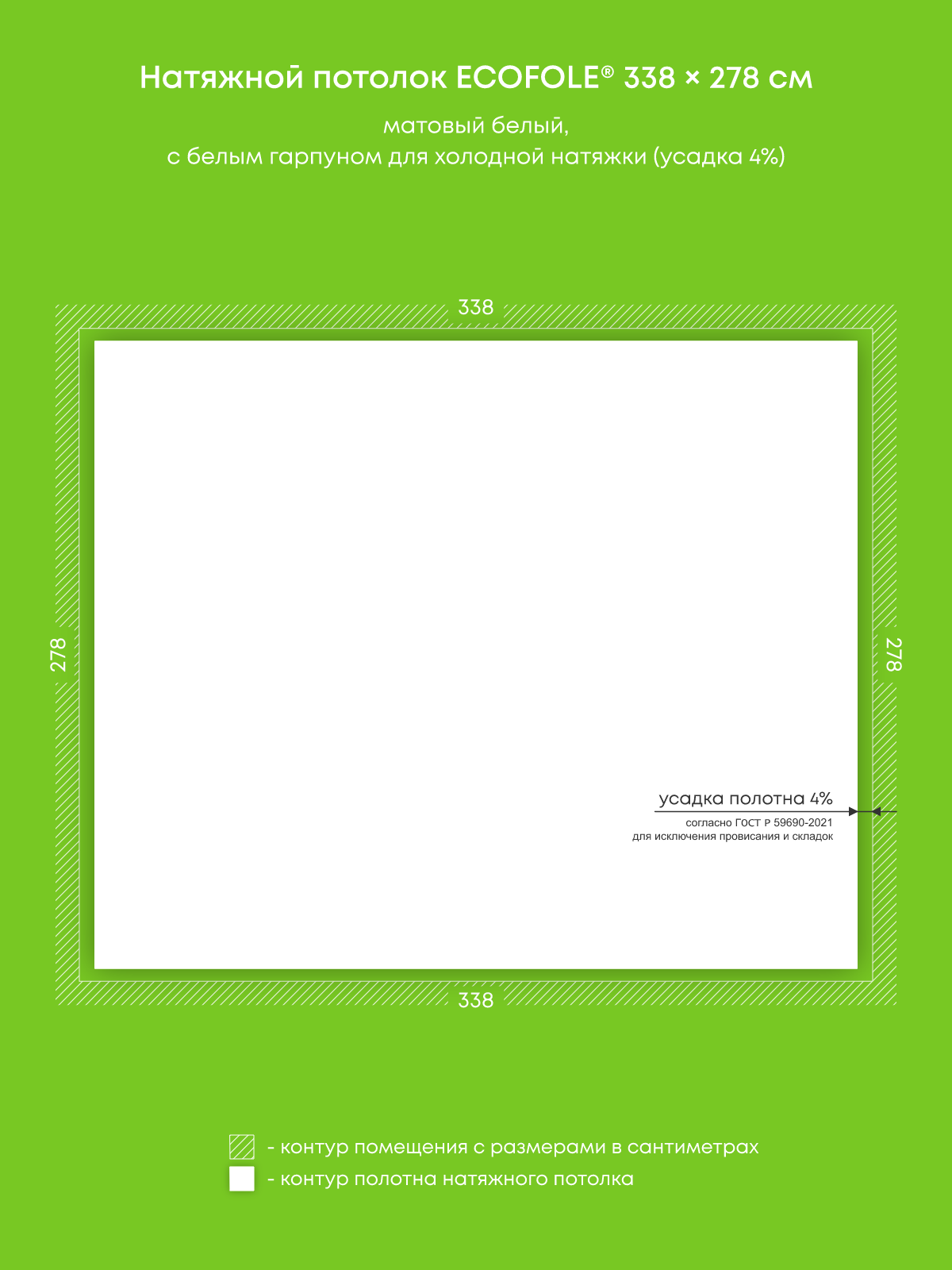 Натяжной потолок белый матовый, изготовленный по индивидуальным размерам покупателя, для спальни площадью 9.4 м2