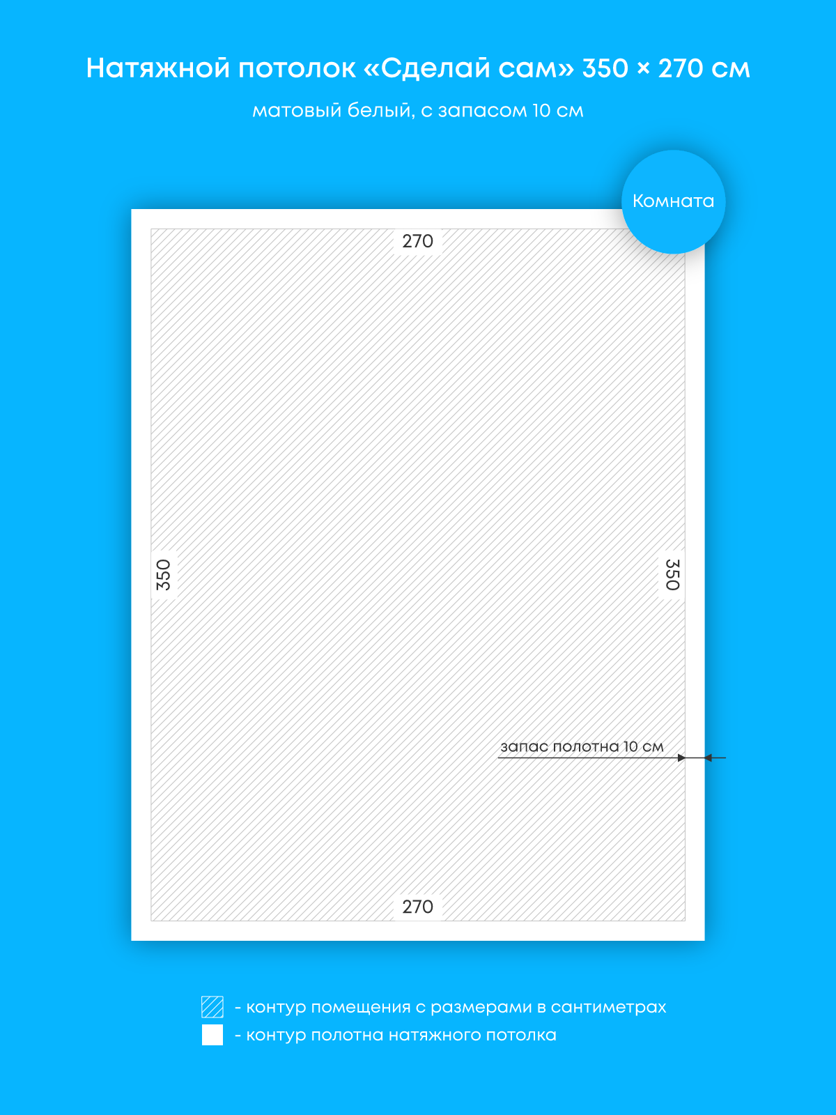 Натяжной потолок белый матовый, сделай сам, изготовленный по индивидуальным размерам покупателя, для помещения площадью 9.5 м2