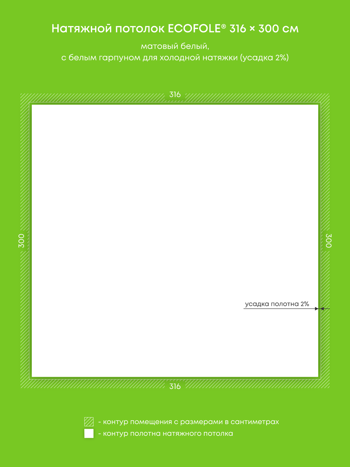Натяжной потолок белый матовый, изготовленный по индивидуальным размерам покупателя, для спальни площадью 9.5 м2