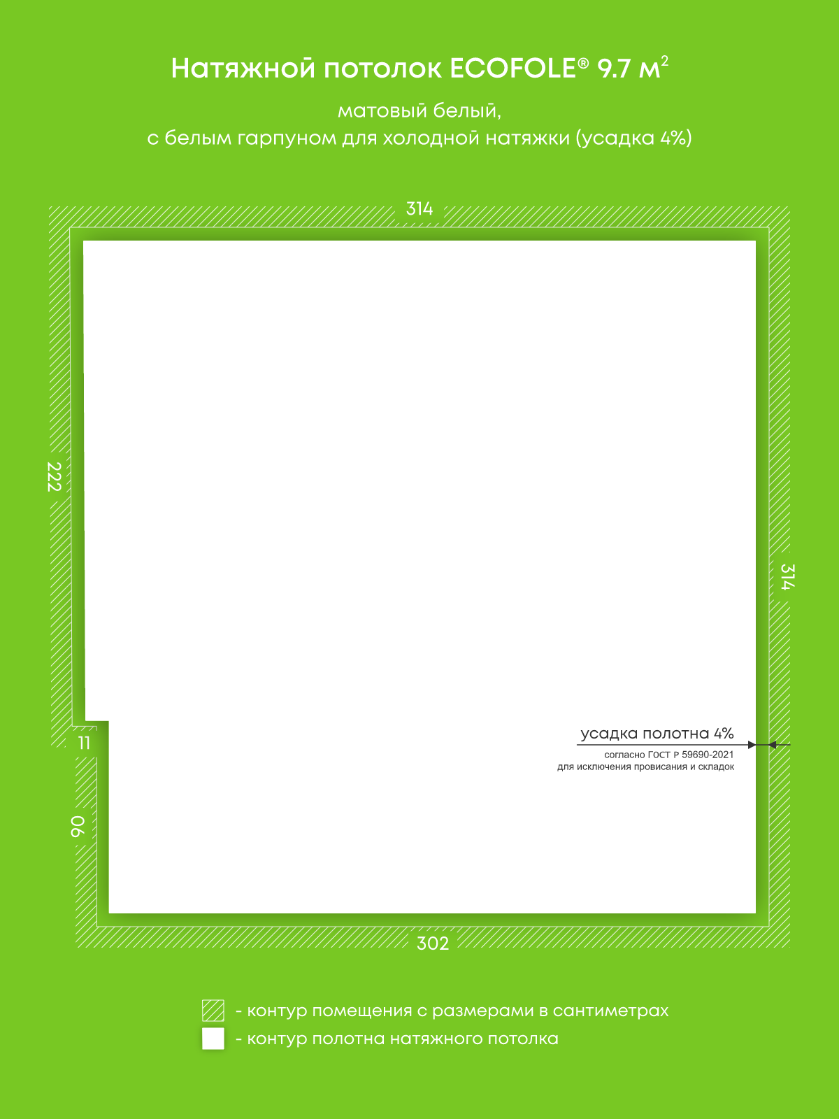 Матовый натяжной потолок 9.7 м2