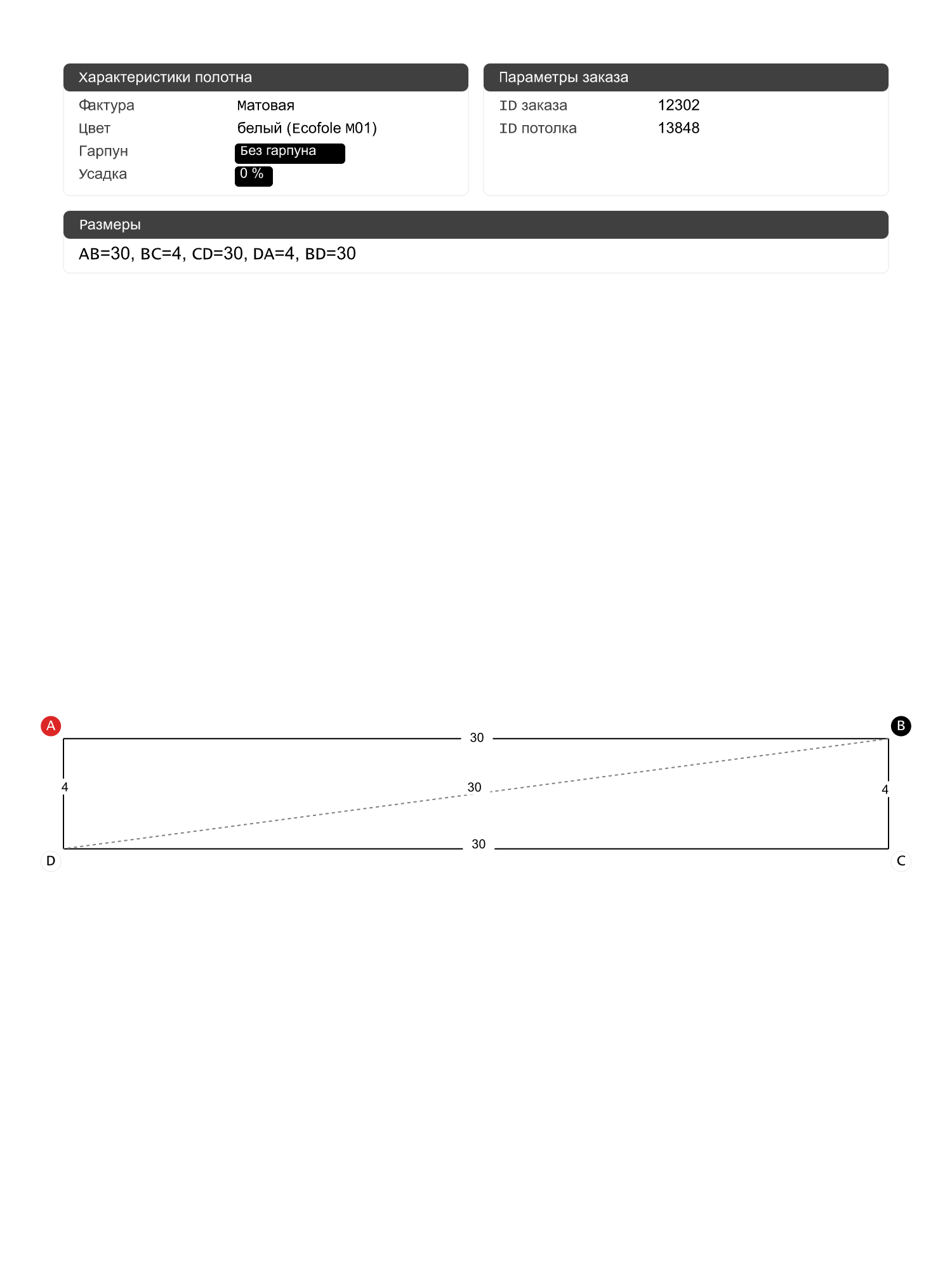 Натяжные потолки изготовленные по индивидуальным размерам покупателя, для двух помещений