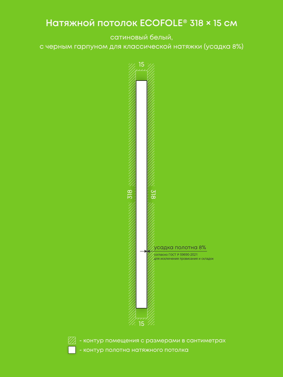 Натяжные потолки, изготовленные по индивидуальным размерам покупателя, для двух помещений площадью 0.5 м2, 8.6 м2