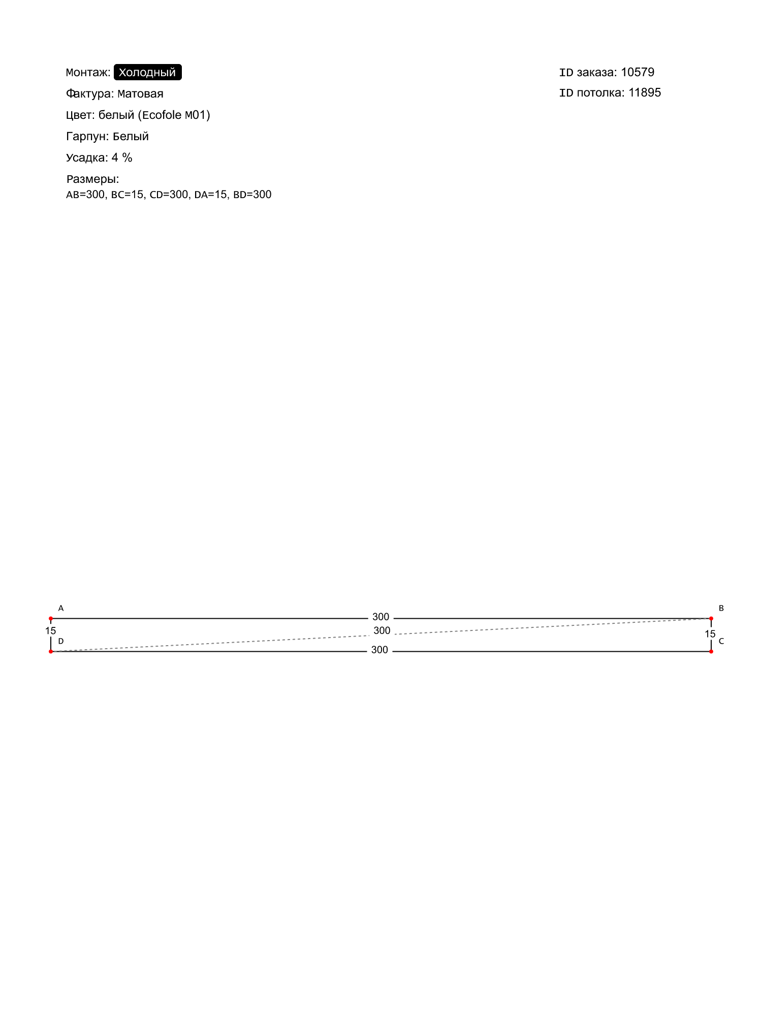 Натяжные потолки изготовленные по индивидуальным размерам покупателя, для двух помещений площадью: 0.5 м2, 9.1 м2
