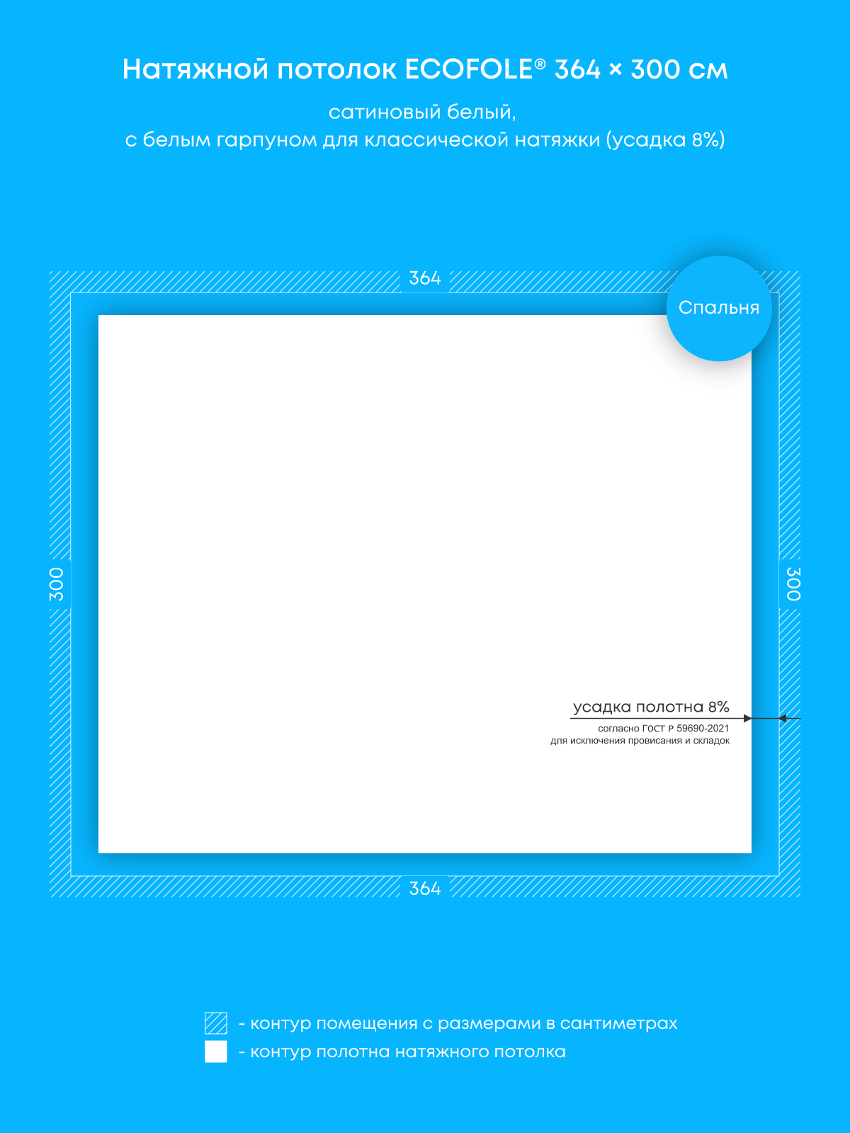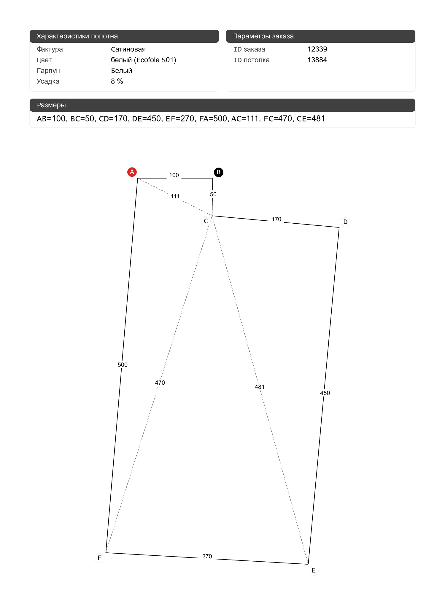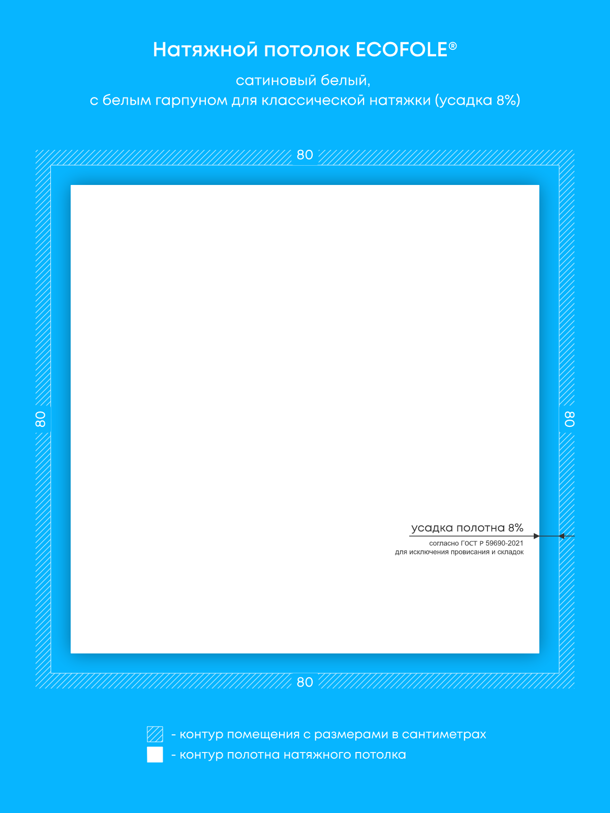 Натяжные потолки изготовленные по индивидуальным размерам покупателя, для четырех помещений площадью: 10.9 м2, 12.8 м2, 0.6 м2, 3.3 м2