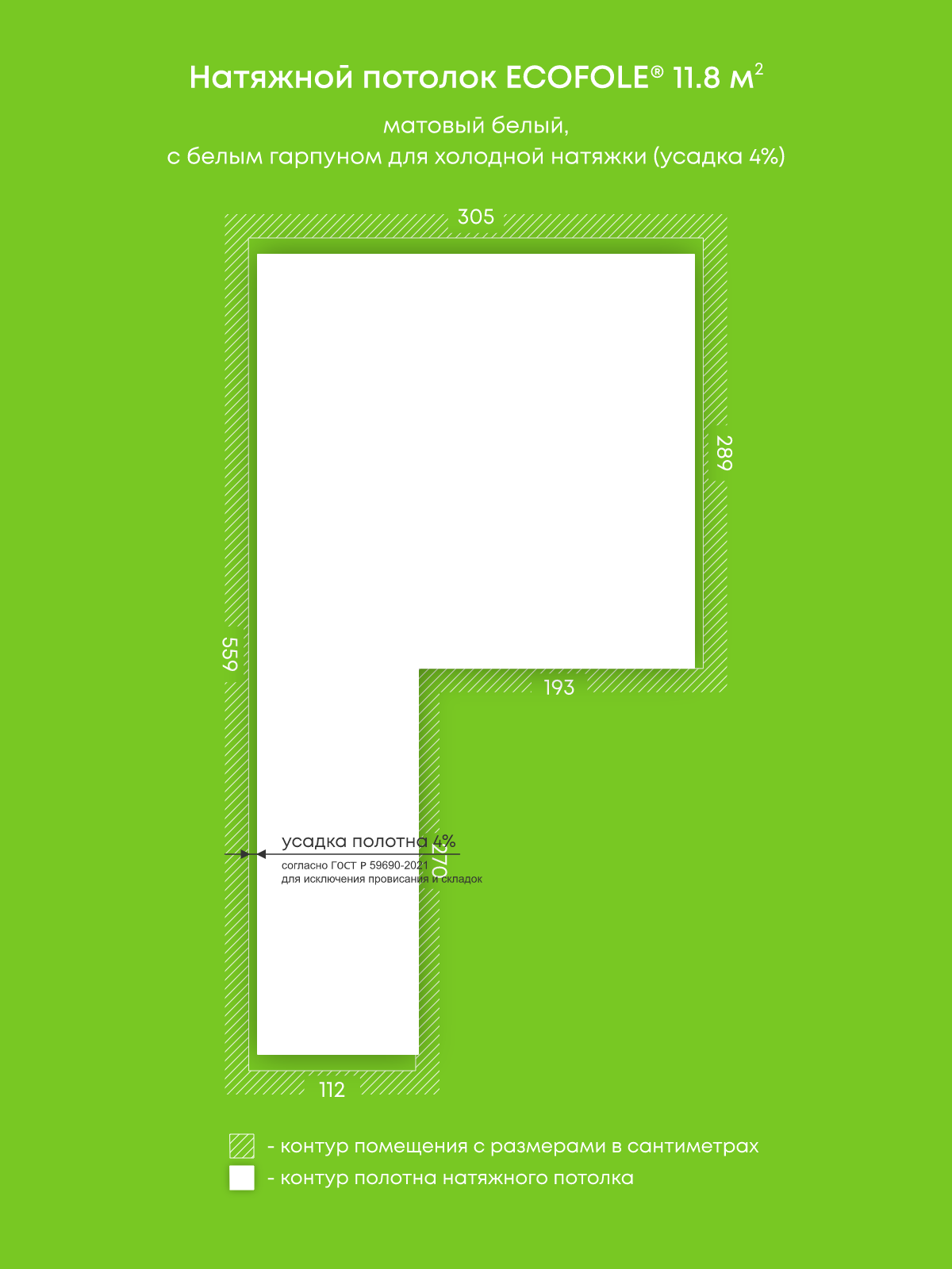 Натяжные потолки, изготовленные по индивидуальным размерам покупателя, для четырех помещений площадью 11.8 м2, 1.5 м2, 3.7 м2, 3.1 м2