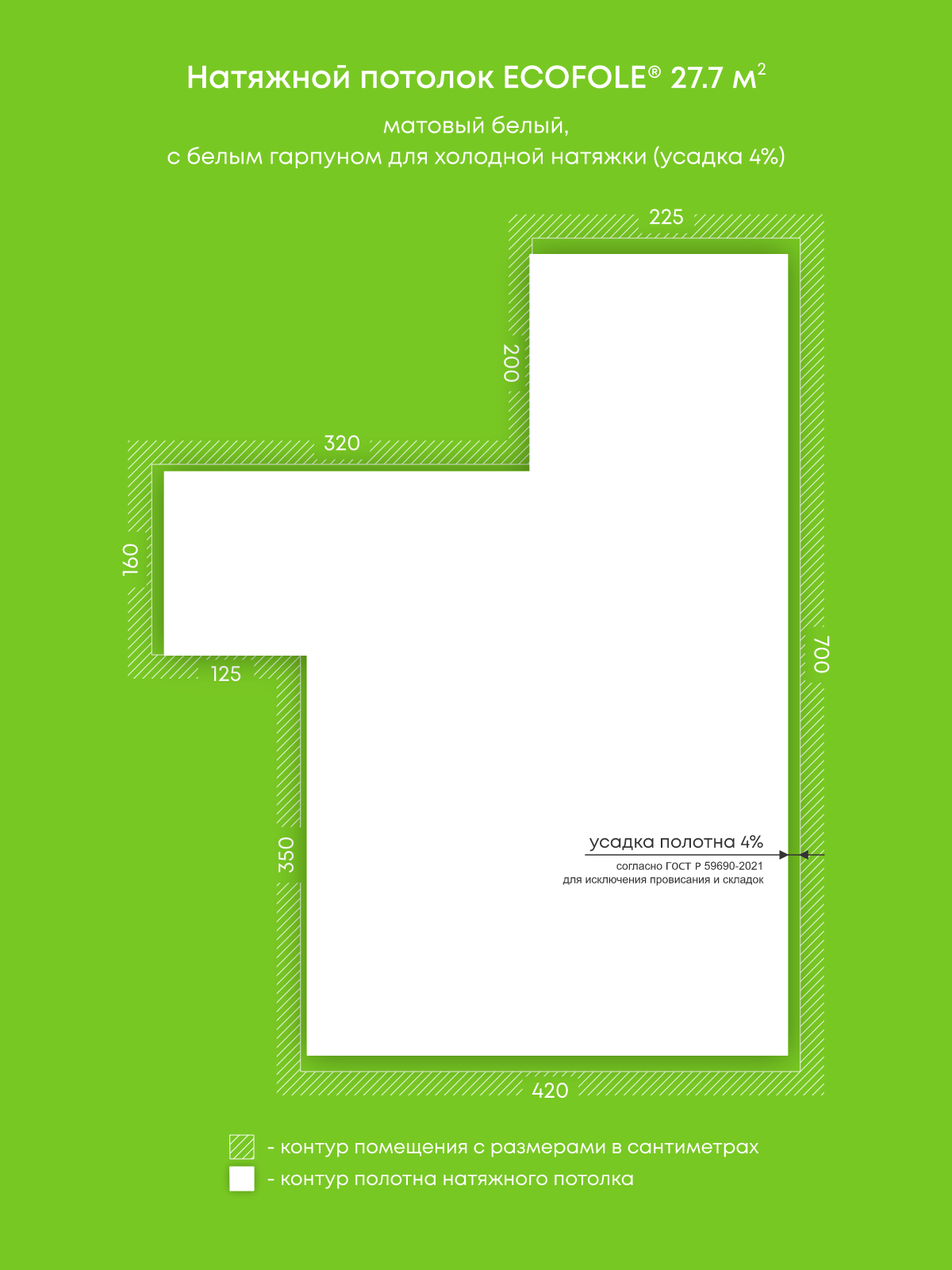 Натяжные потолки, изготовленные по индивидуальным размерам покупателя, для трех помещений площадью 11.9 м2, 15.9 м2, 27.7 м2