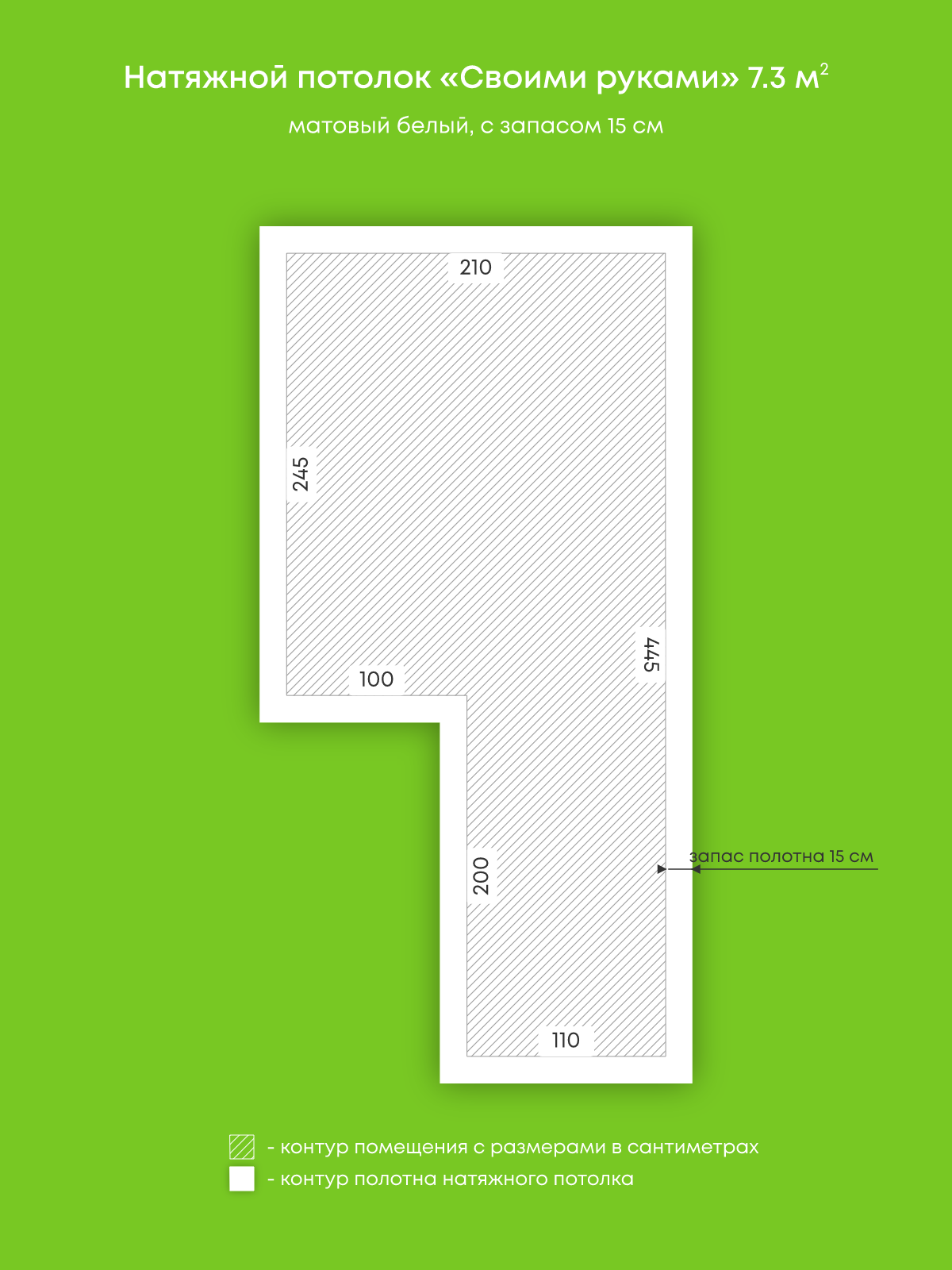 Натяжные потолки, изготовленные по индивидуальным размерам покупателя, для трех помещений площадью 12 м2, 14 м2, 7.3 м2