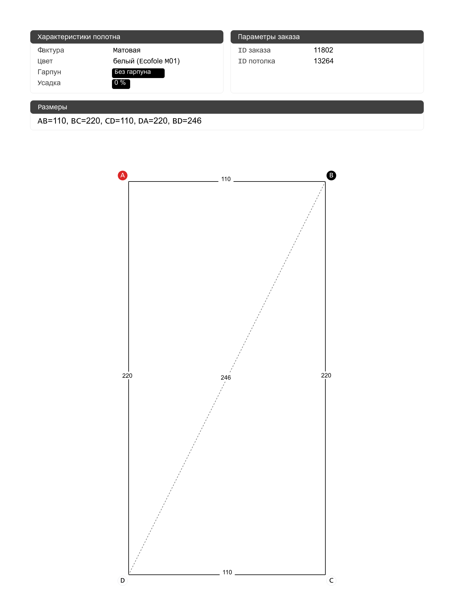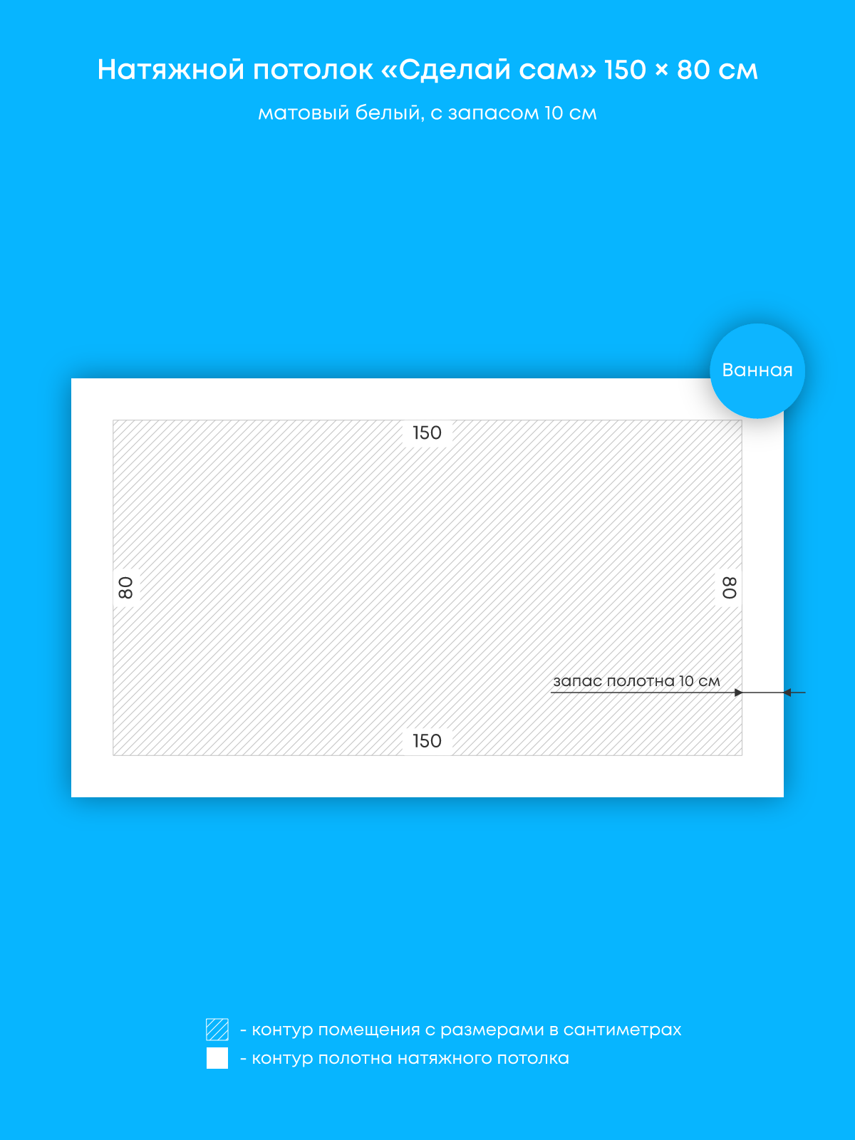 Натяжные потолки изготовленные по индивидуальным размерам покупателя, для четырех помещений площадью: 1.2 м2, 2.2 м2, 3.3 м2, 1.8 м2