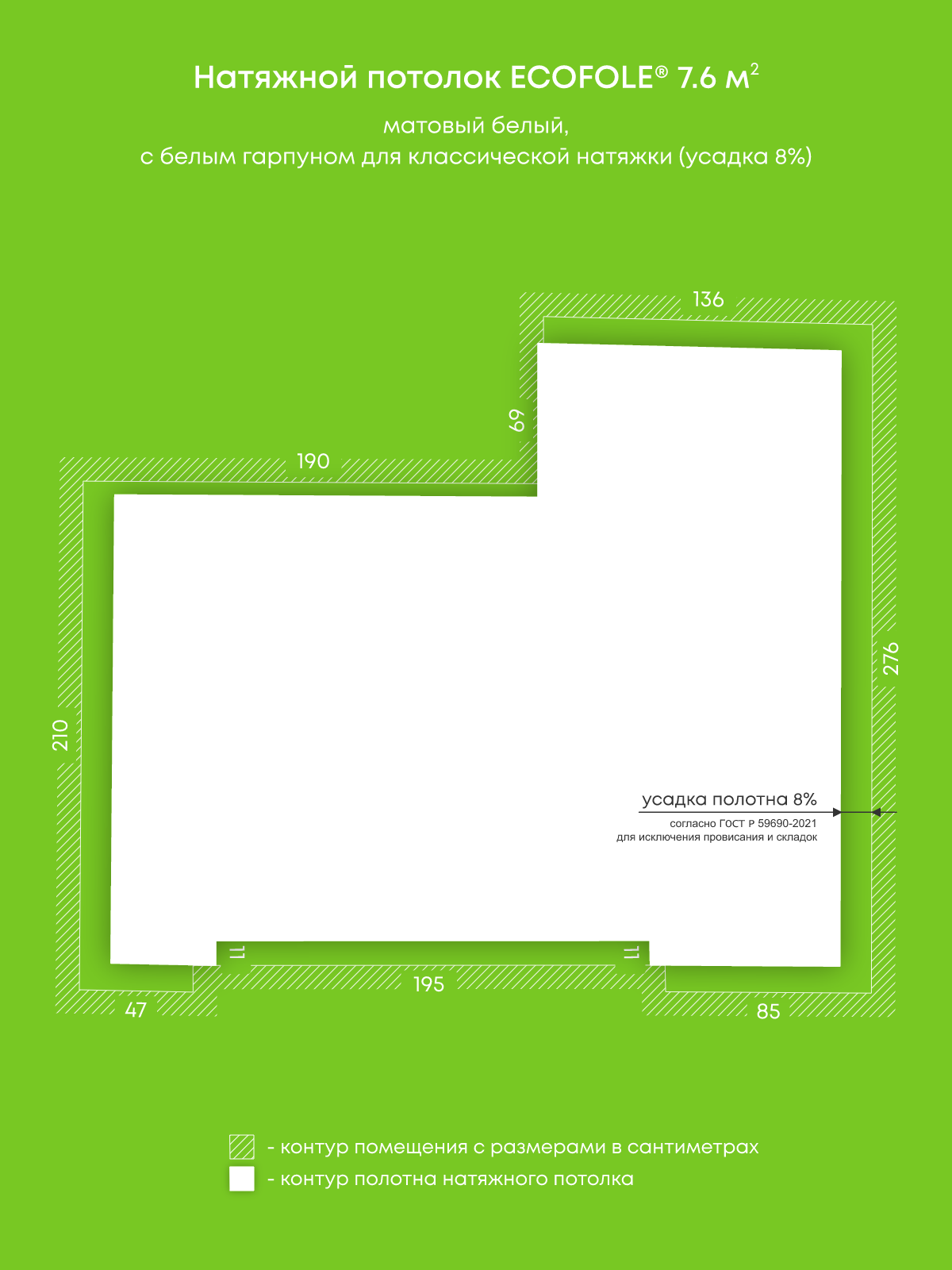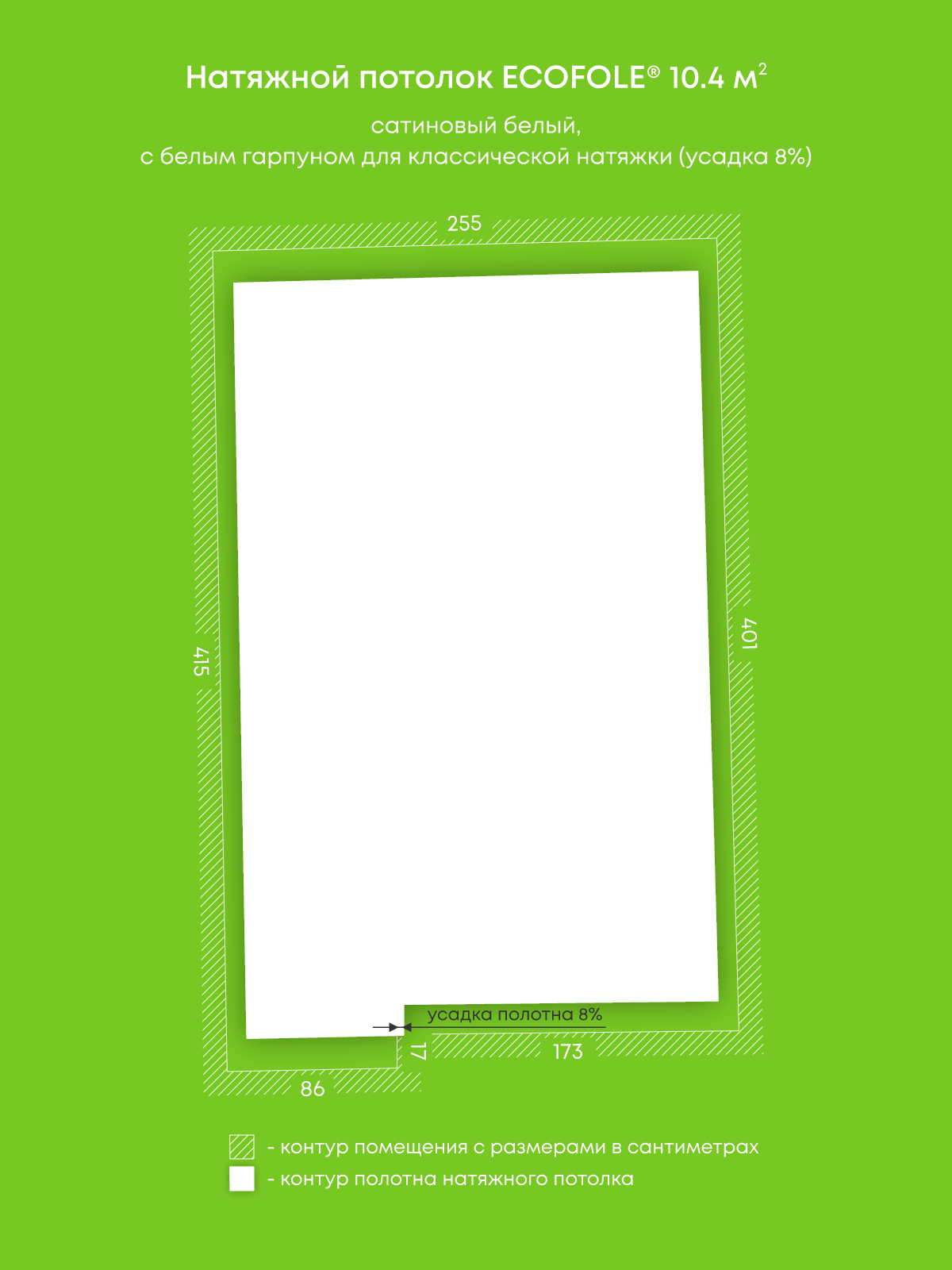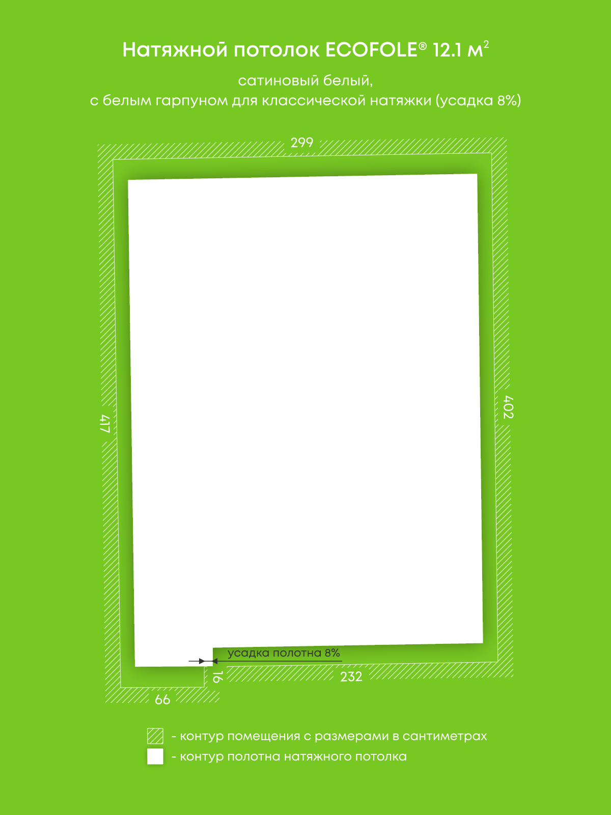 Натяжные потолки, изготовленные по индивидуальным размерам покупателя, для трех помещений площадью 12.1 м2, 10.4 м2, 7.6 м2