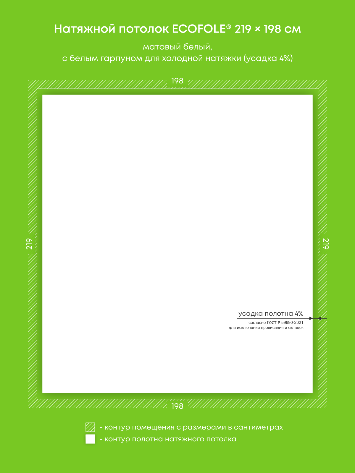 Натяжные потолки, изготовленные по индивидуальным размерам покупателя, для четырех помещений площадью 12.1 м2, 4.3 м2, 4.3 м2, 2.3 м2
