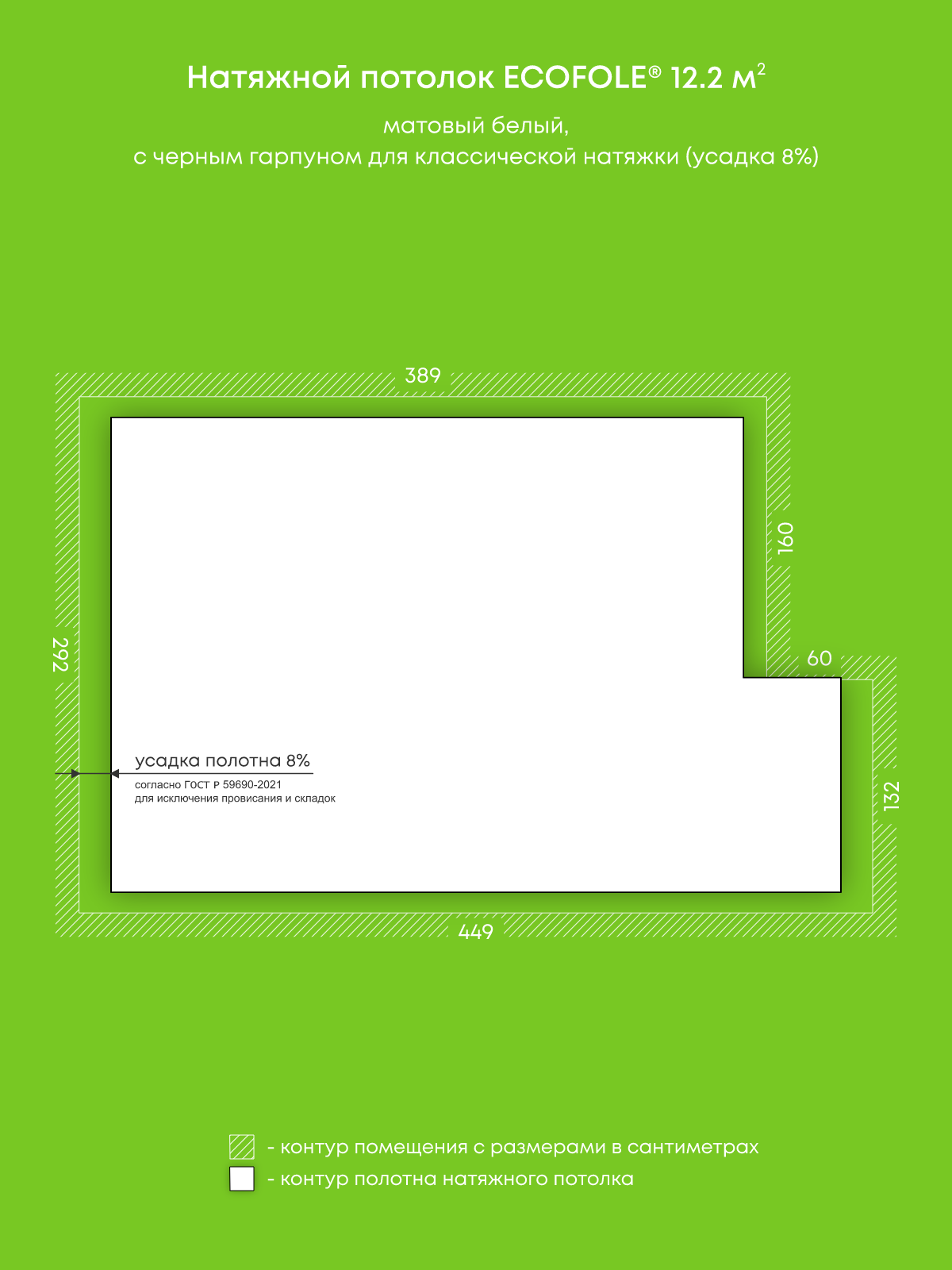 Натяжные потолки, изготовленные по индивидуальным размерам покупателя, для трех помещений площадью 12.6 м2, 12.2 м2, 13.8 м2