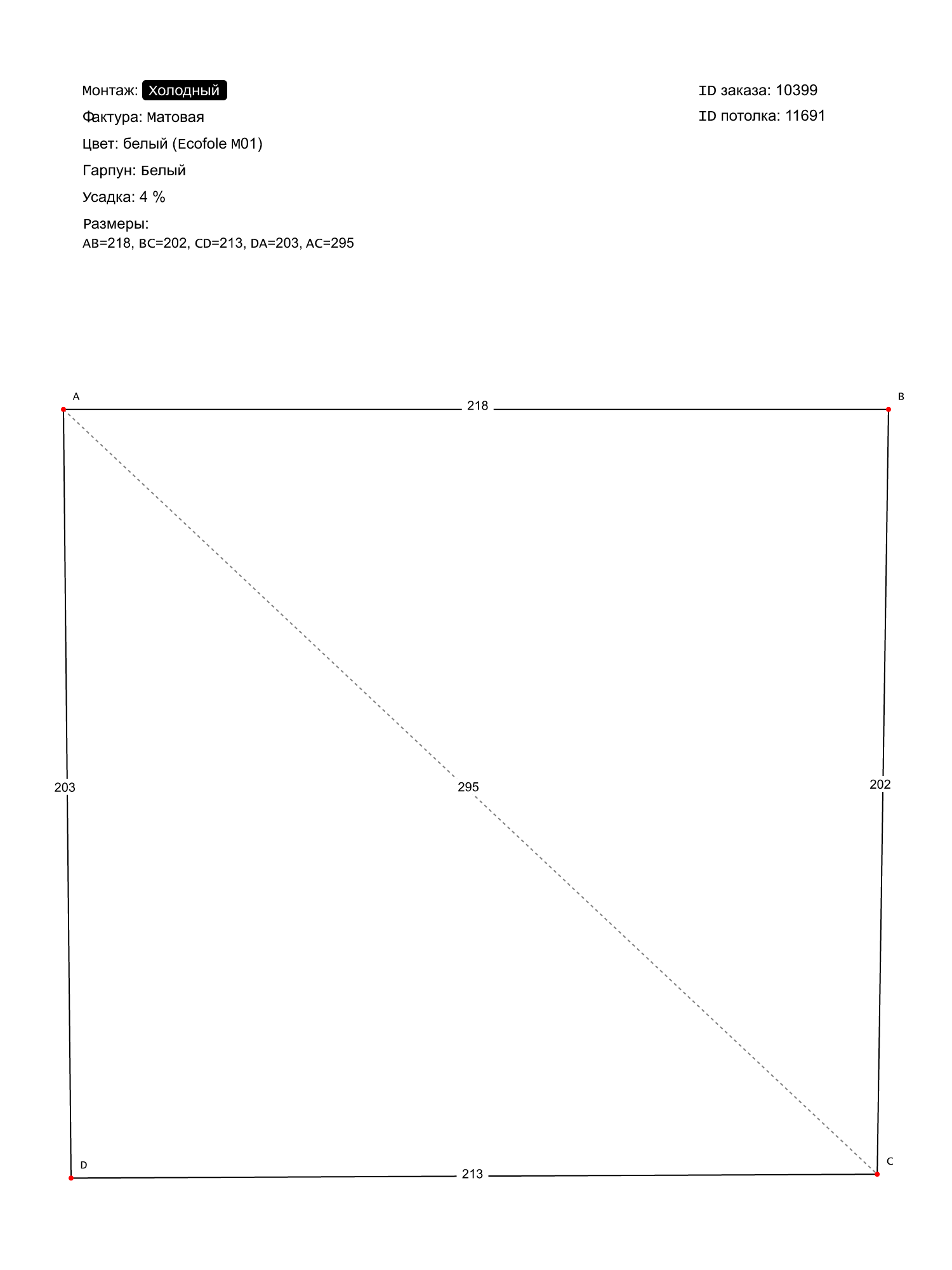 Натяжные потолки изготовленные по индивидуальным размерам покупателя, для трех помещений площадью: 1.3 м2, 4.4 м2, 7.6 м2