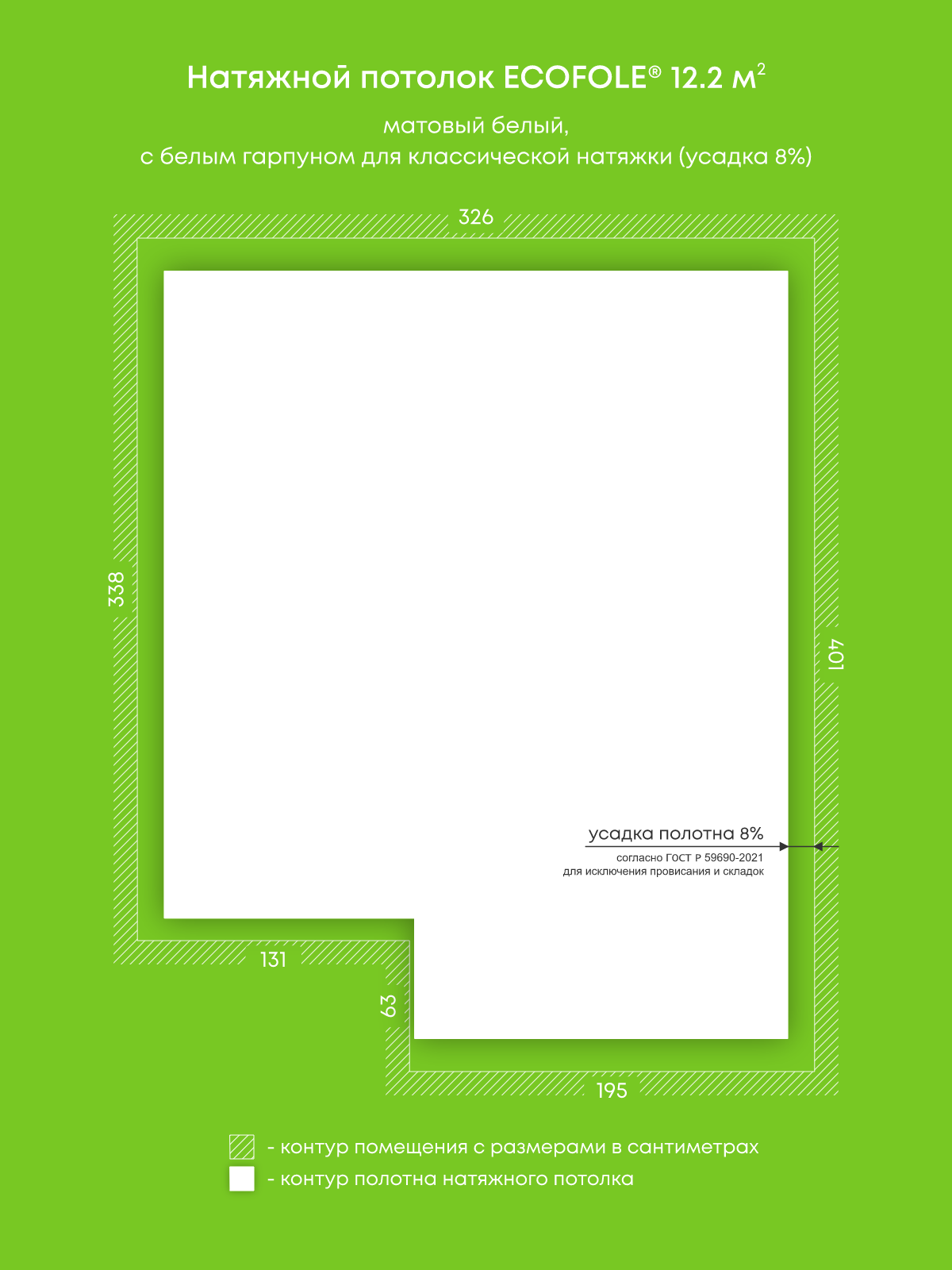 Натяжные потолки, изготовленные по индивидуальным размерам покупателя, для двух помещений площадью 13.9 м2, 12.2 м2