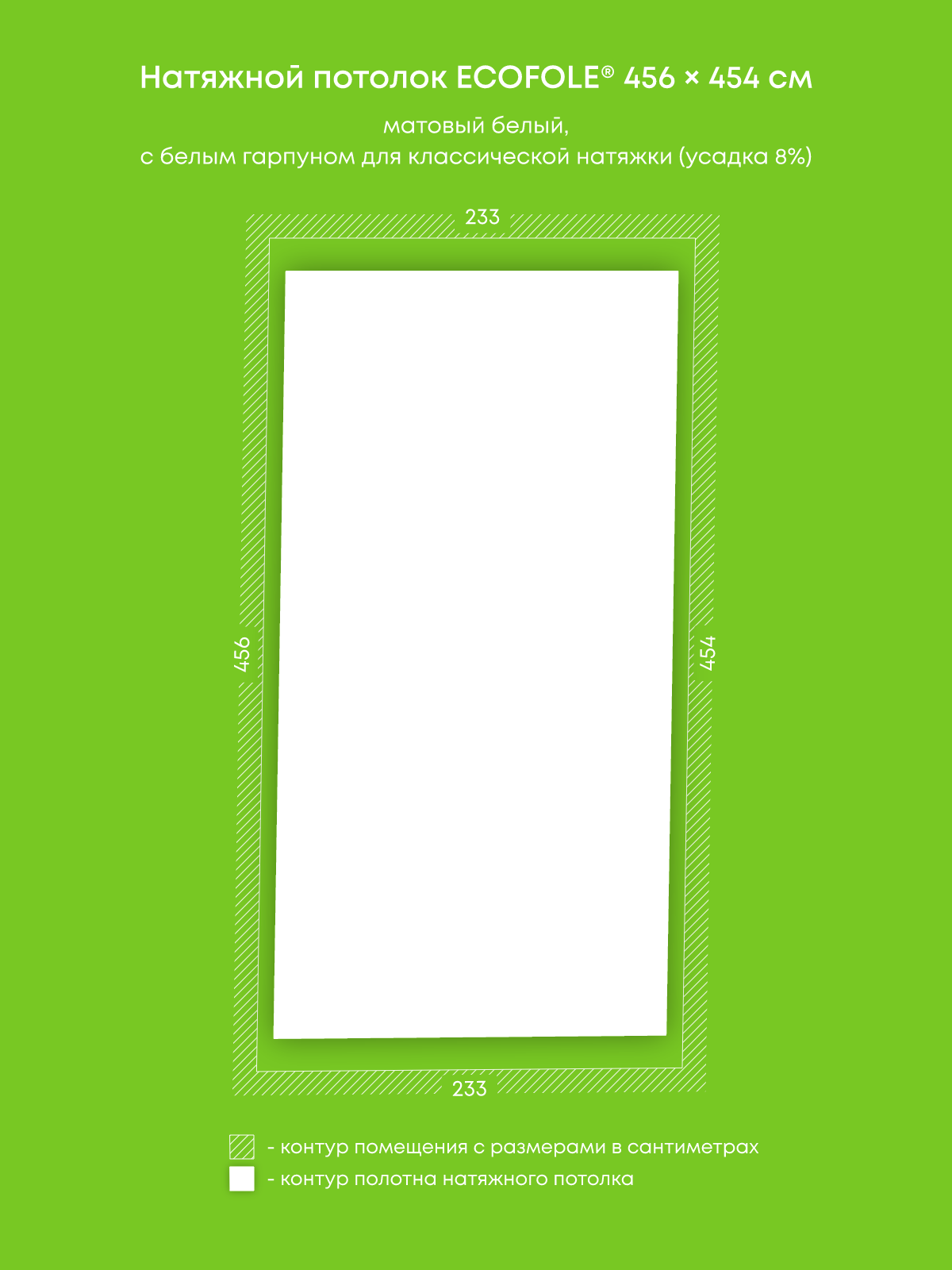 Натяжные потолки, изготовленные по индивидуальным размерам покупателя, для двух помещений площадью 14.1 м2, 10.6 м2