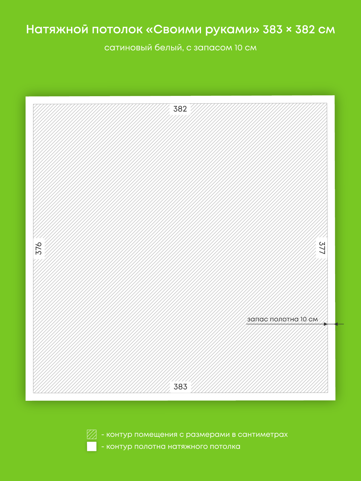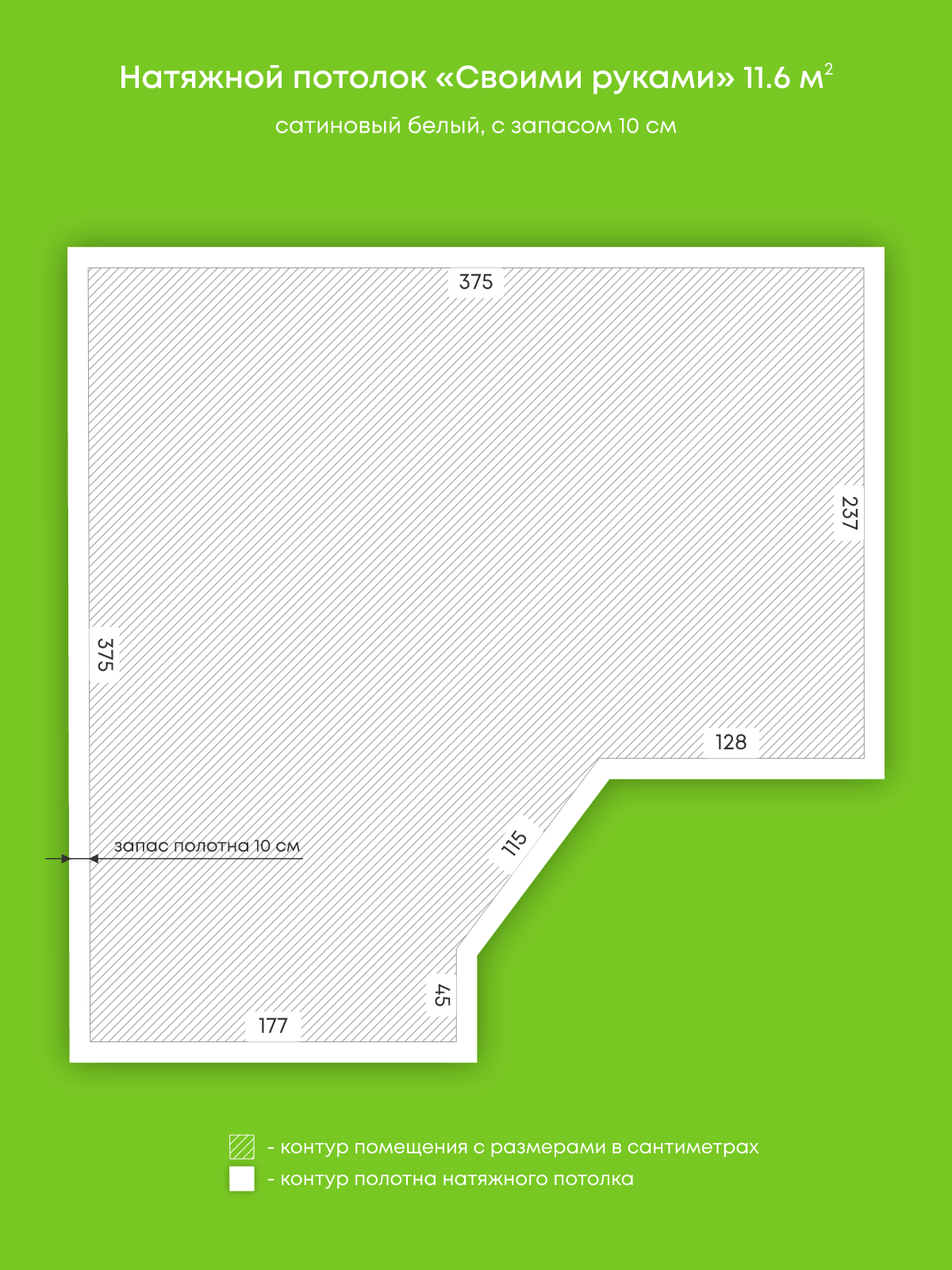 Натяжные потолки, изготовленные по индивидуальным размерам покупателя, для четырех помещений площадью 14.4 м2, 11.6 м2, 12.1 м2, 17.7 м2