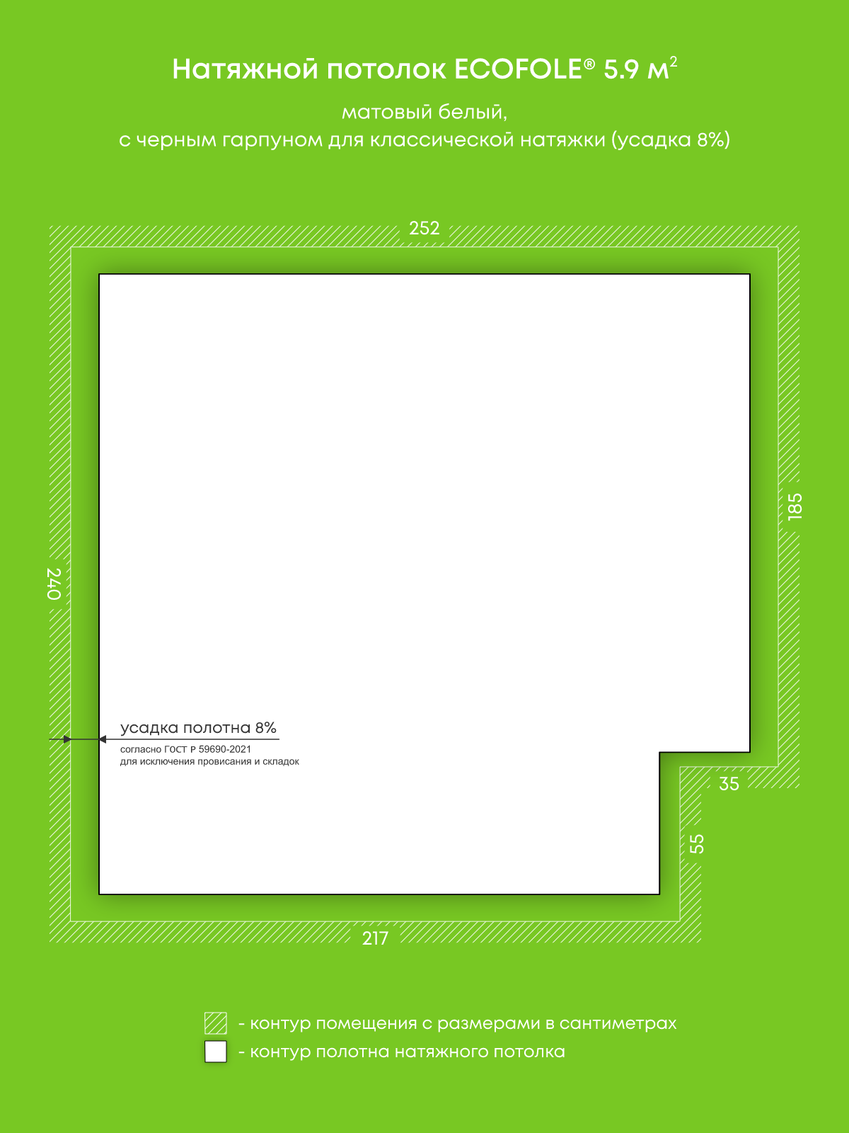 Натяжные потолки, изготовленные по индивидуальным размерам покупателя, для двух помещений площадью 14.4 м2, 5.9 м2