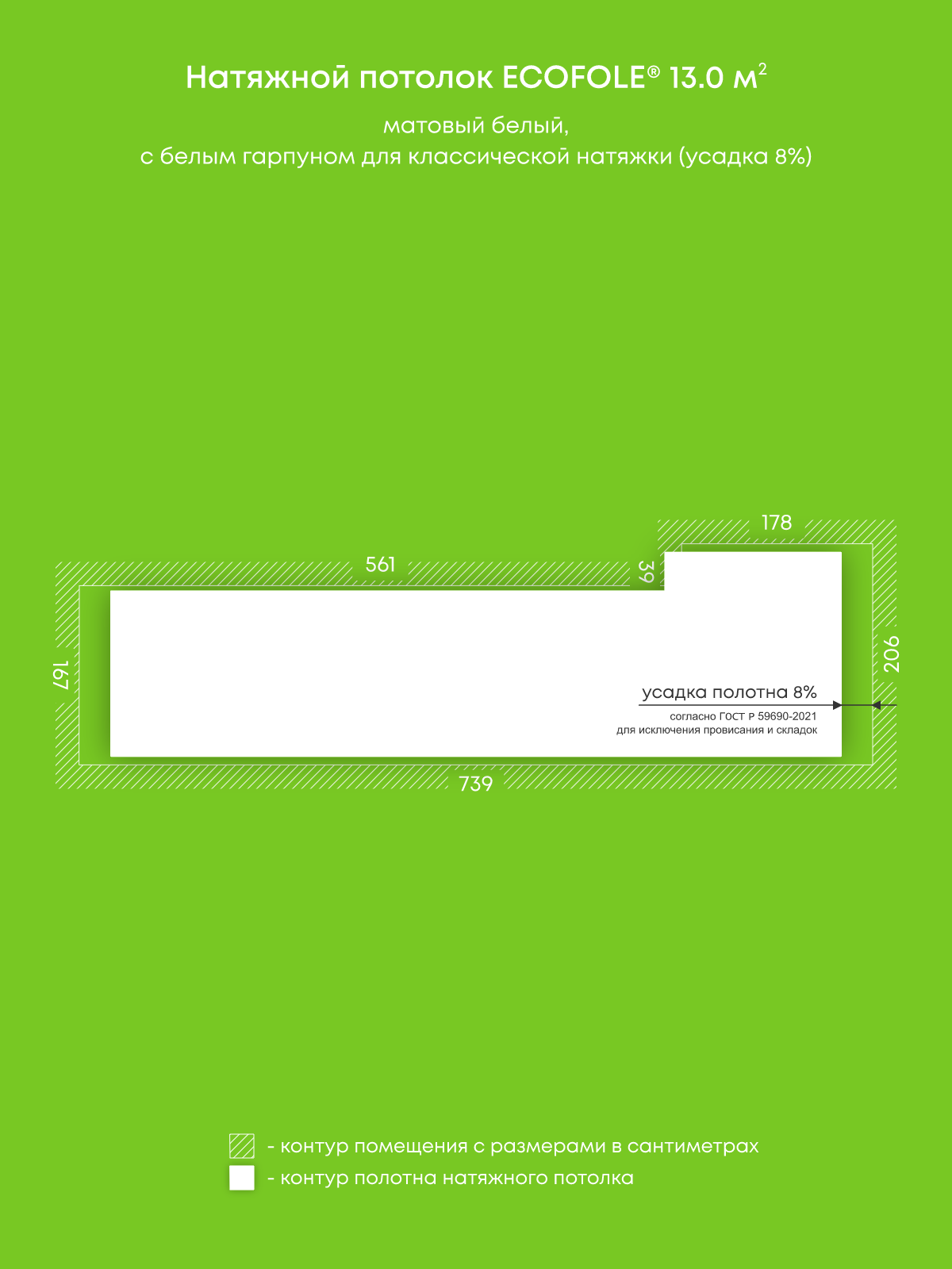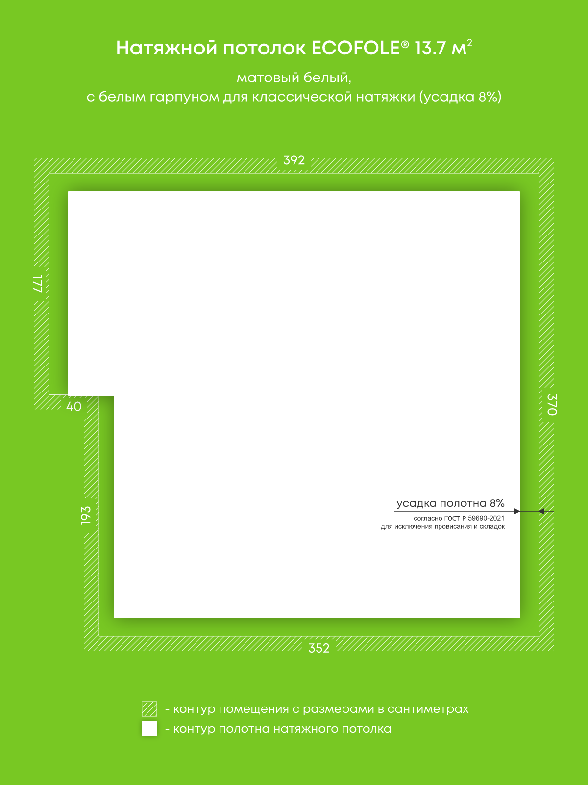 Натяжные потолки, изготовленные по индивидуальным размерам покупателя, для четырех помещений площадью 14.5 м2, 13.5 м2, 13.7 м2, 13 м2