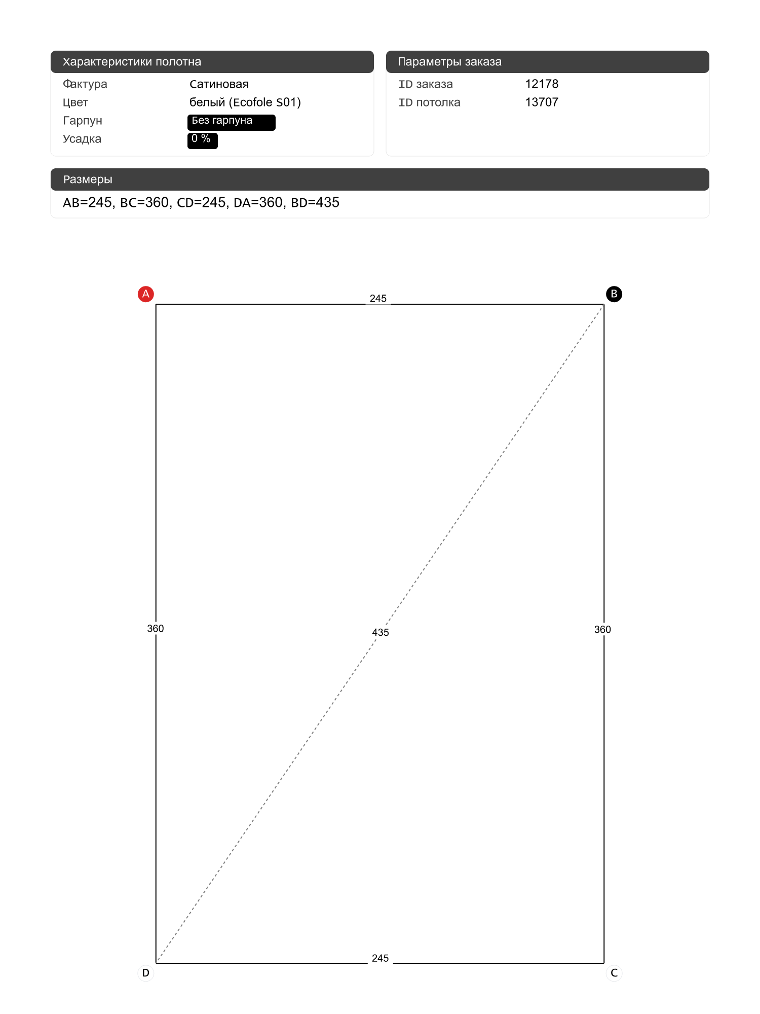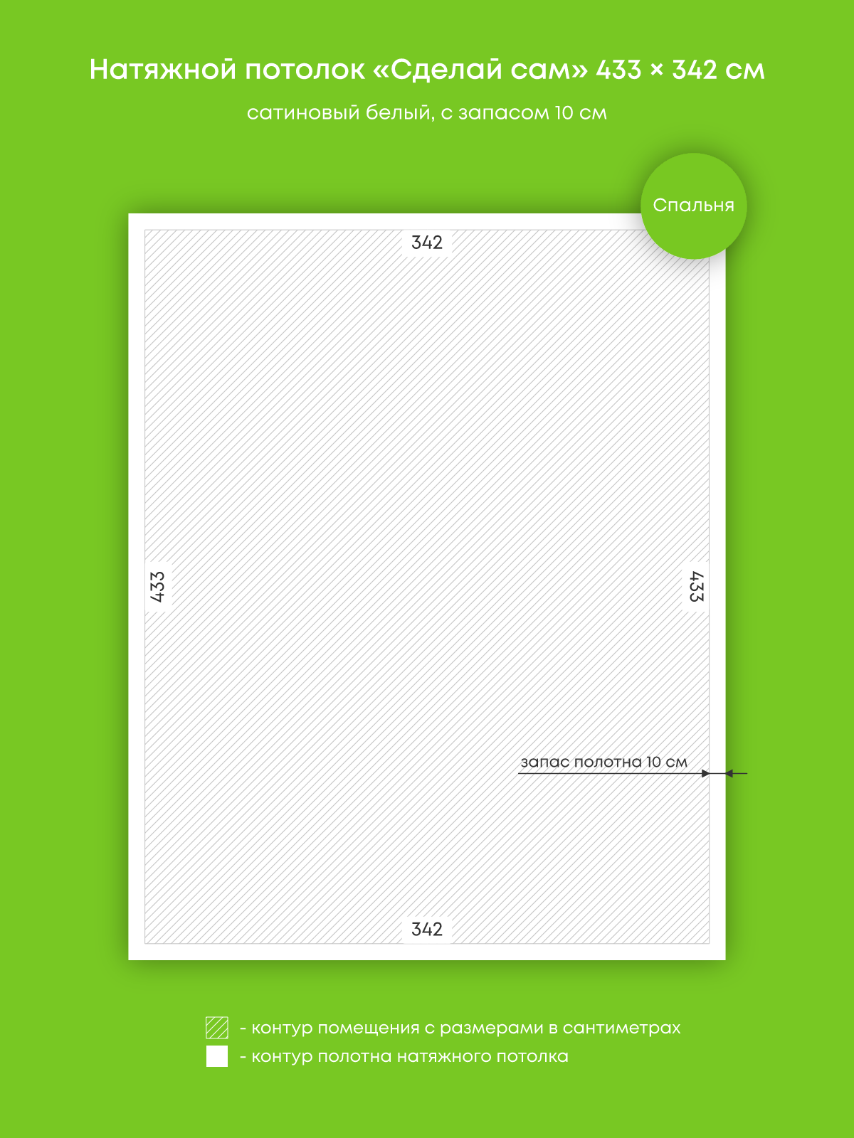 Натяжные потолки изготовленные по индивидуальным размерам покупателя, для двух помещений площадью: 14.8 м2, 7.7 м2