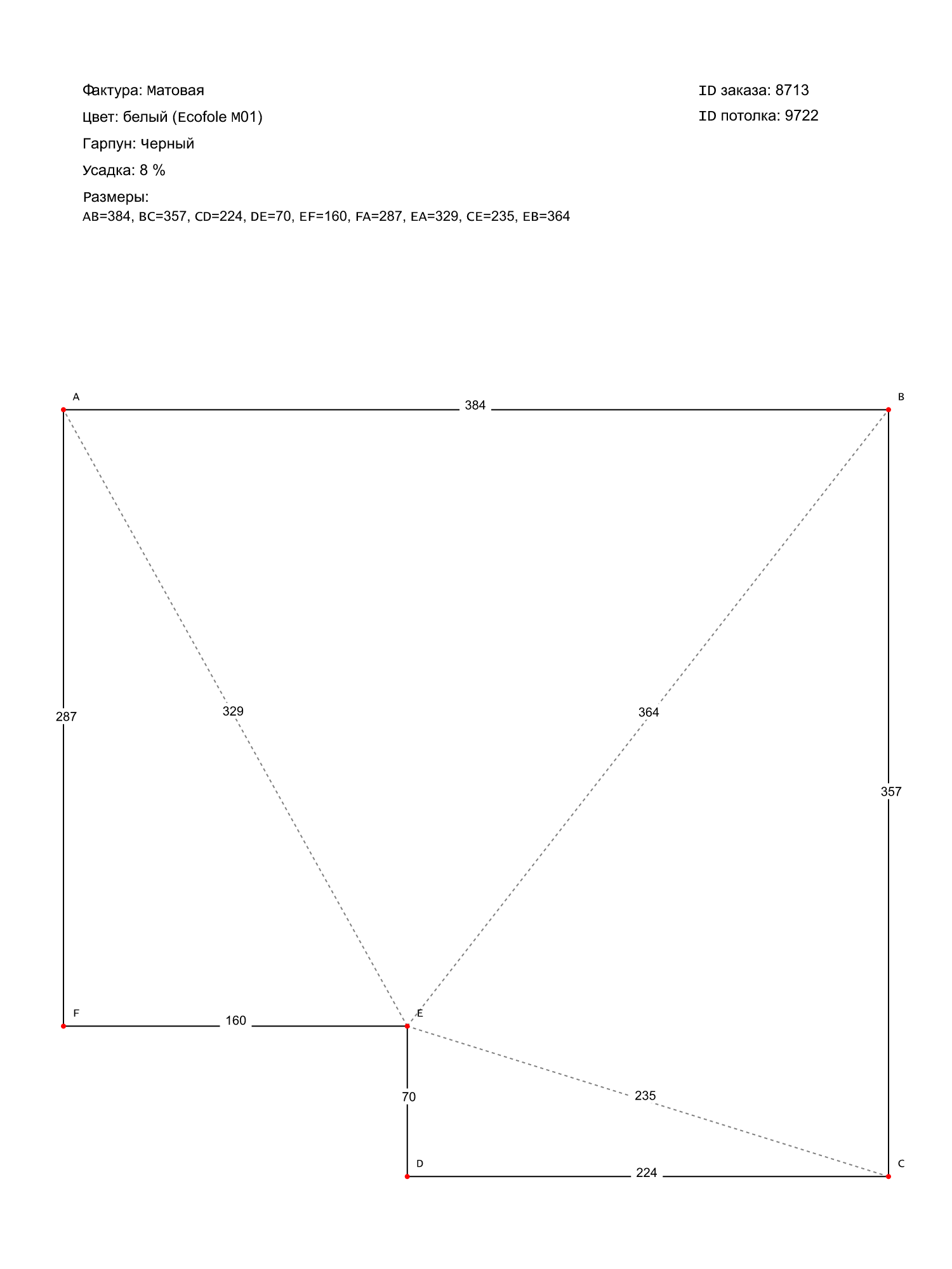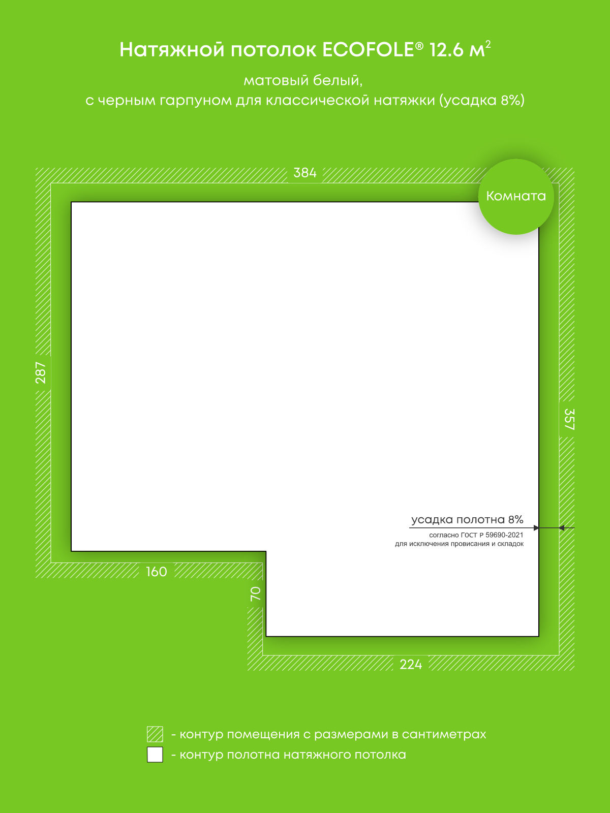 Натяжные потолки изготовленные по индивидуальным размерам покупателя, для двух помещений площадью: 14.9 м2, 12.6 м2