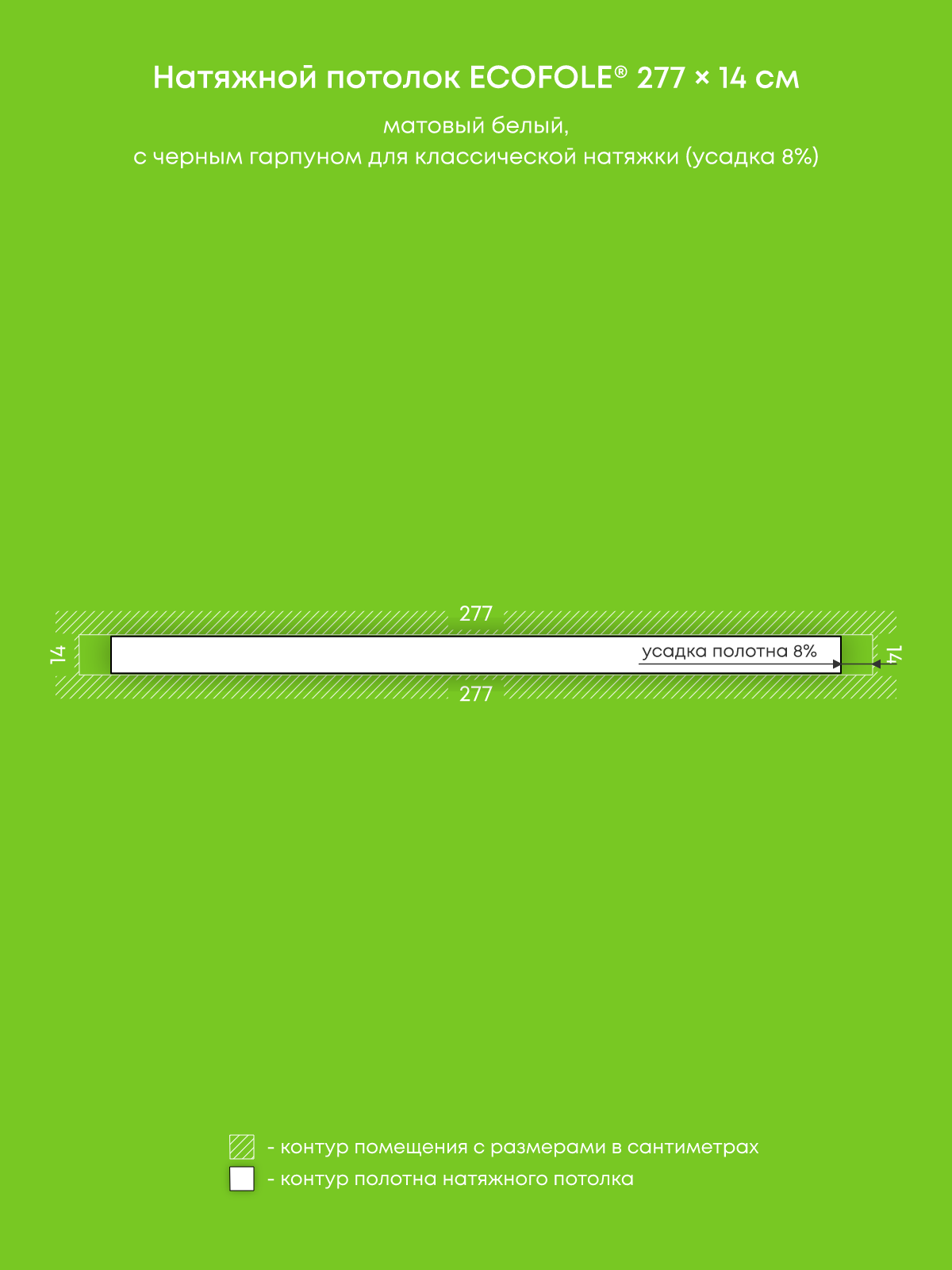 Натяжные потолки, изготовленные по индивидуальным размерам покупателя, для двух помещений площадью 15 м2, 0.4 м2