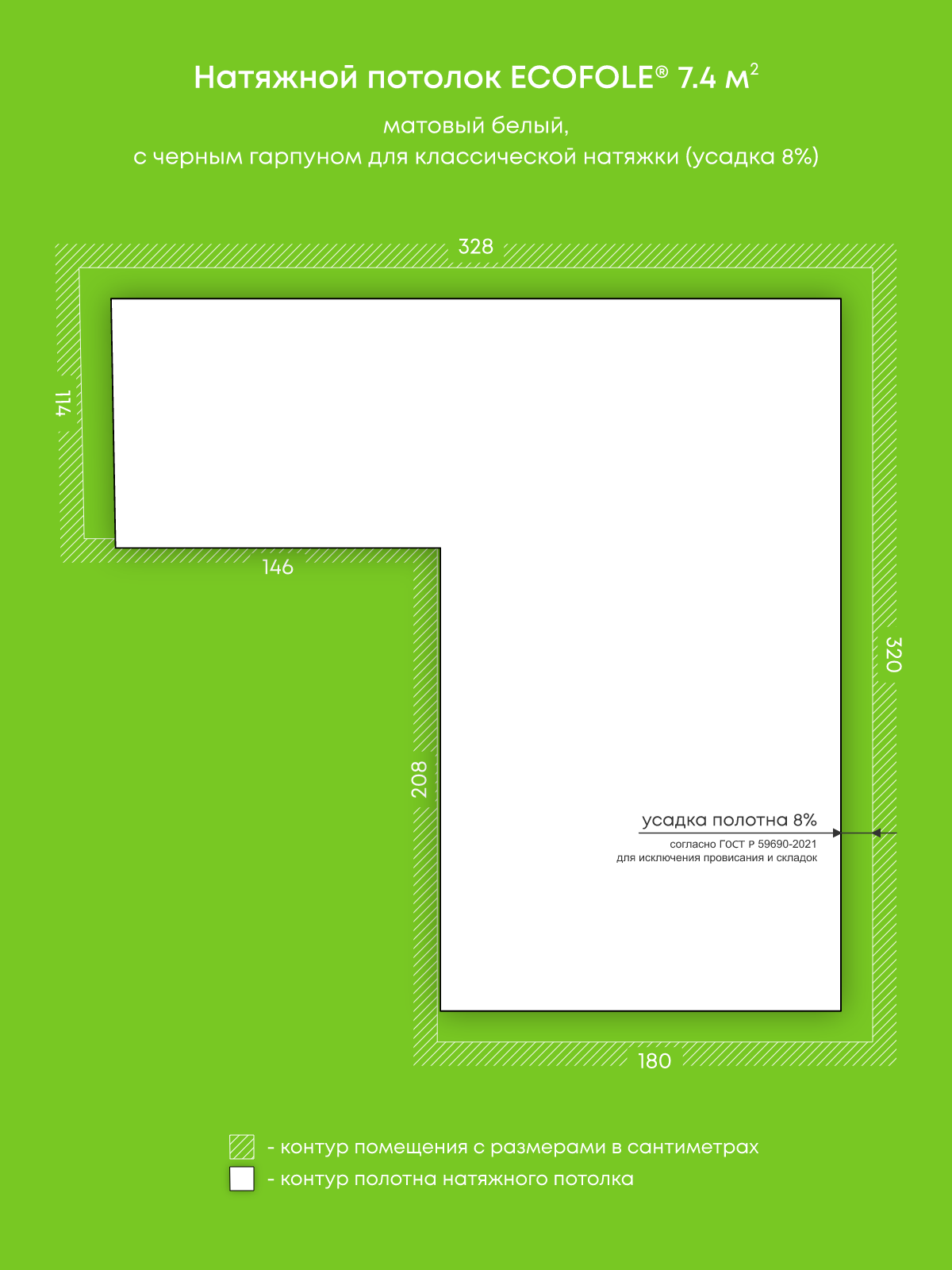 Натяжные потолки, изготовленные по индивидуальным размерам покупателя, для пяти помещений площадью 15 м2, 11.5 м2, 15.2 м2, 7.4 м2, 3.1 м2