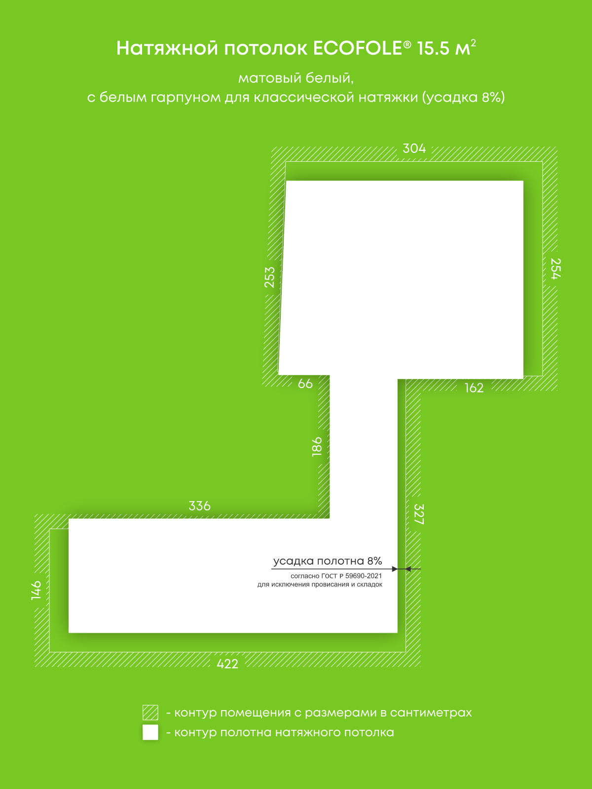 Натяжные потолки, изготовленные по индивидуальным размерам покупателя, для двух помещений площадью 15.5 м2, 13.1 м2