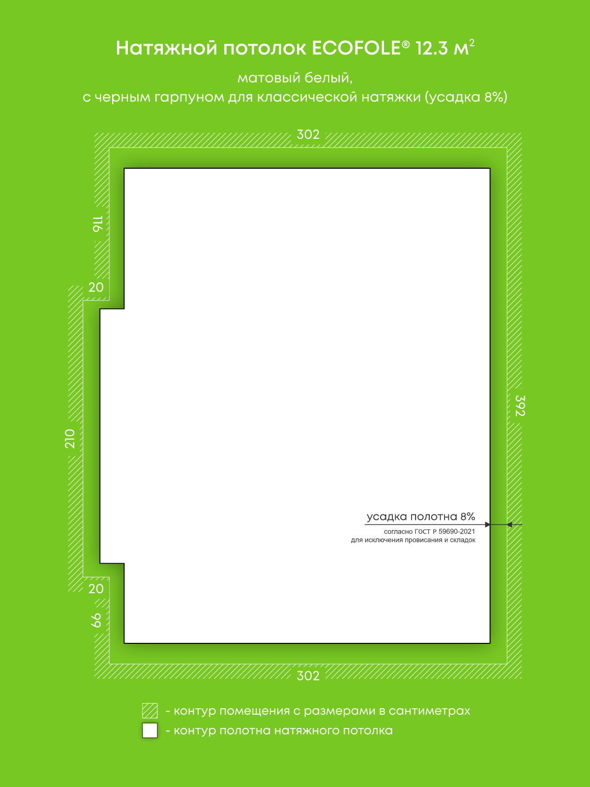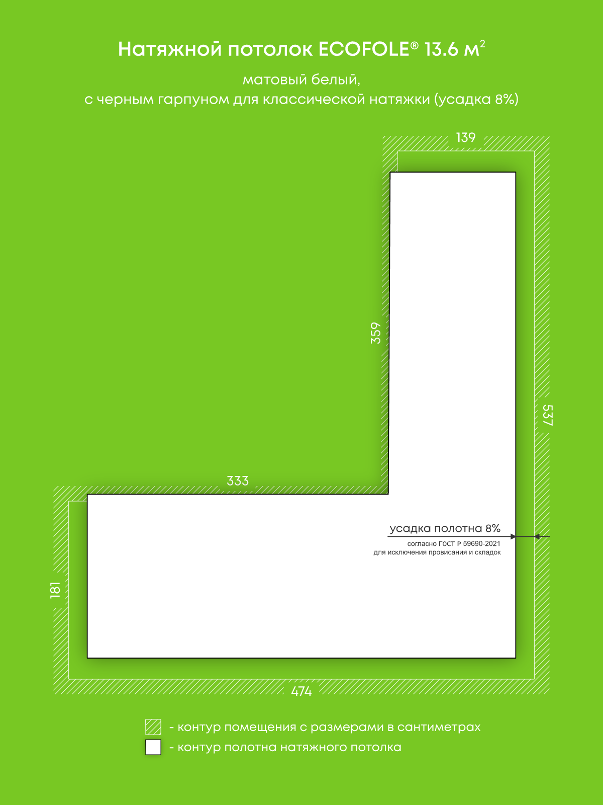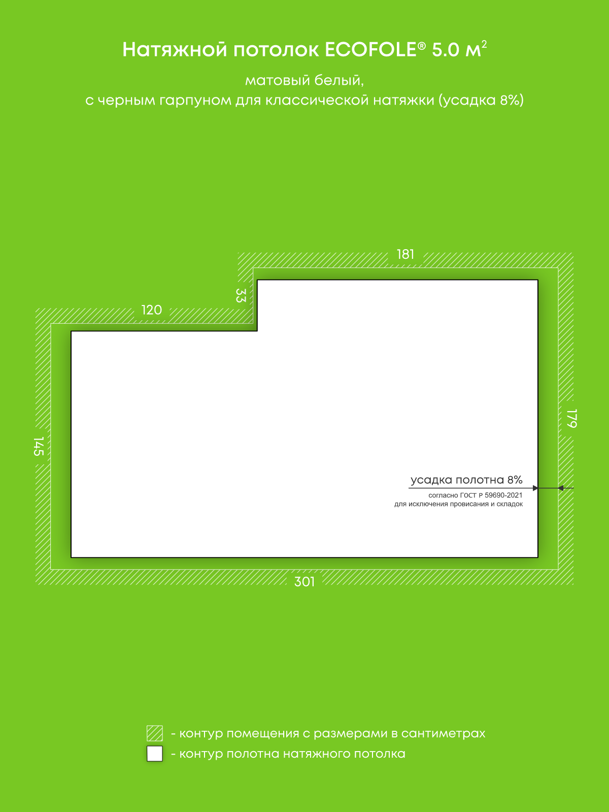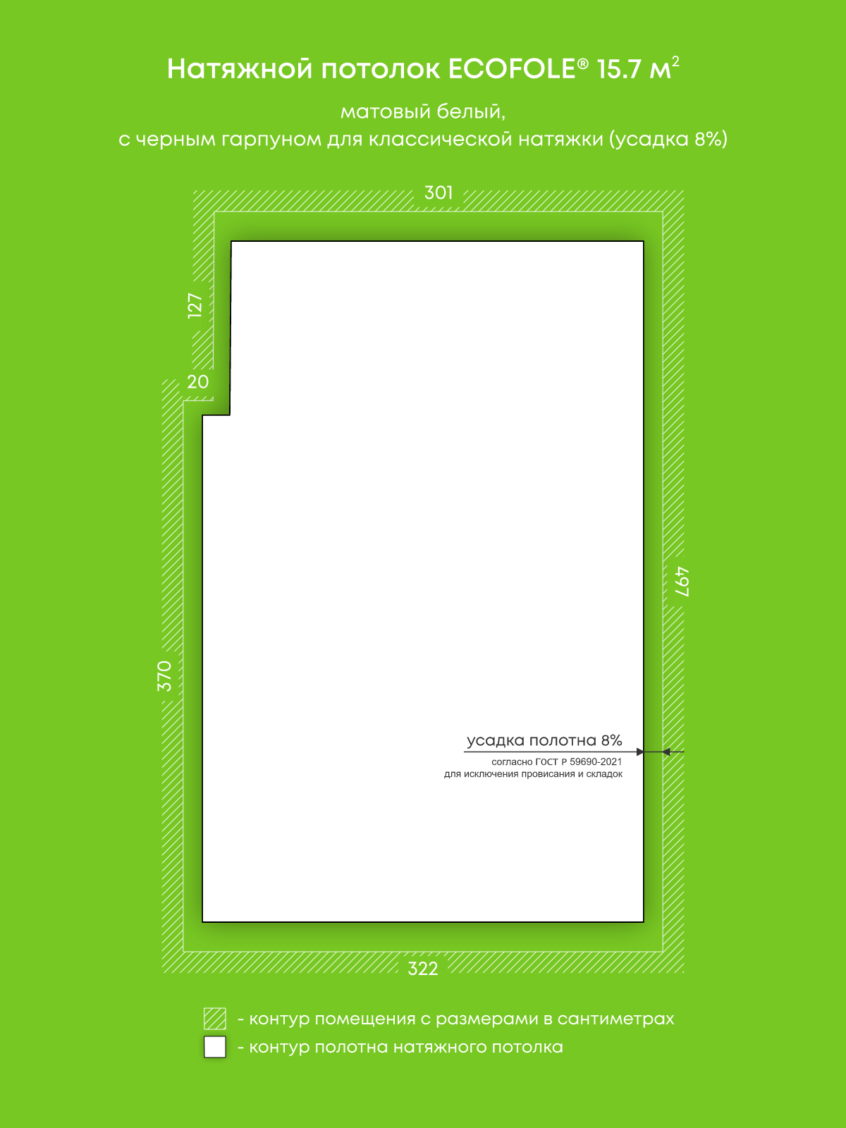 Натяжные потолки, изготовленные по индивидуальным размерам покупателя, для пяти помещений площадью 15.7 м2, 12 м2, 12.3 м2, 13.6 м2, 5 м2