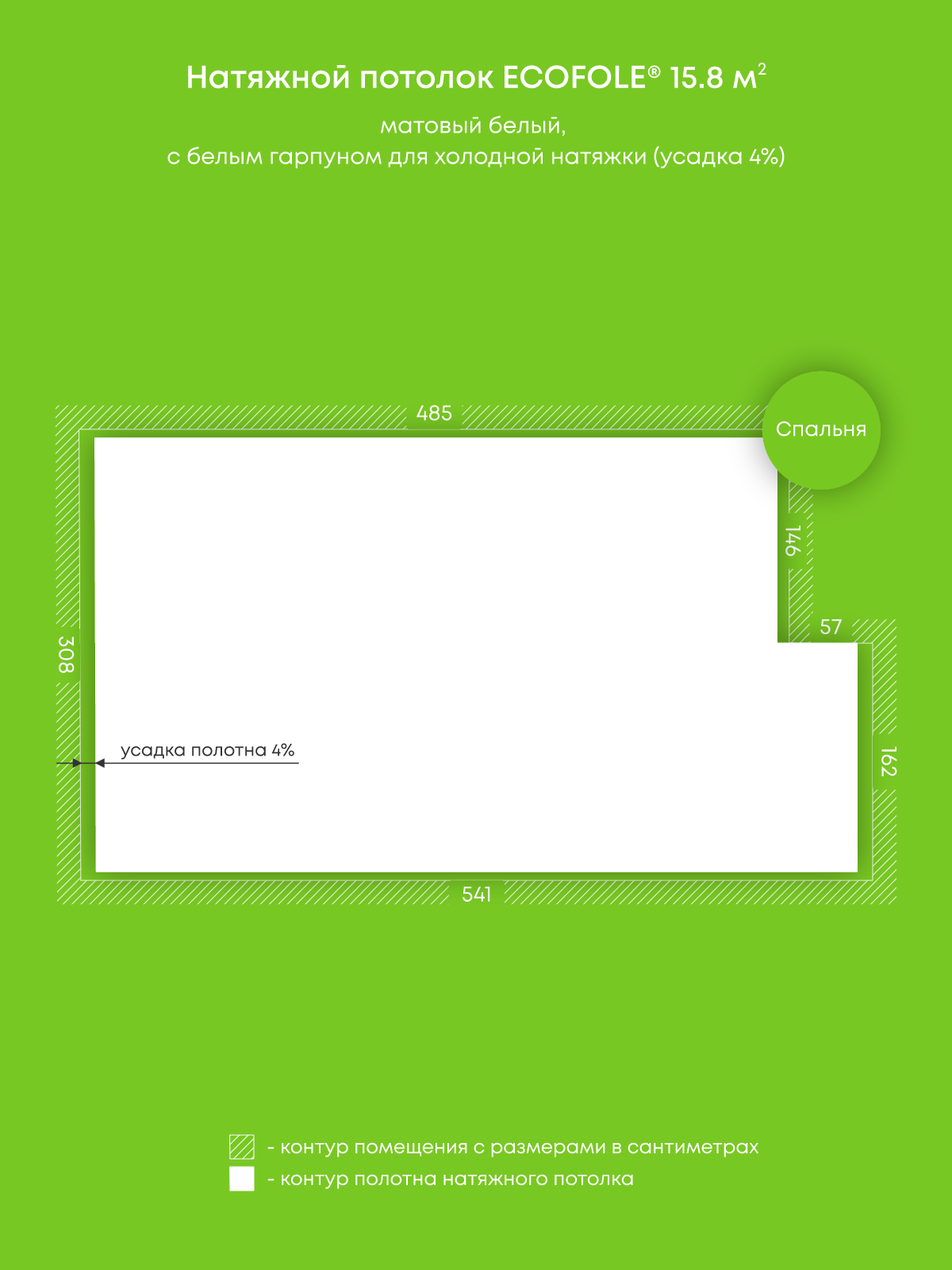 Натяжные потолки, изготовленные по индивидуальным размерам покупателя, для двух помещений площадью 15.8 м2, 11.5 м2