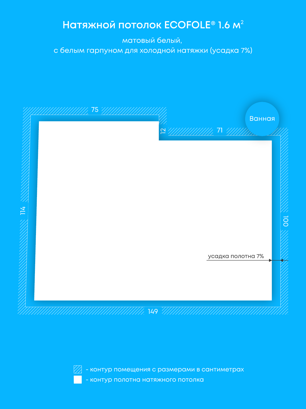 Натяжные потолки: 1.6 м2, 1 м2