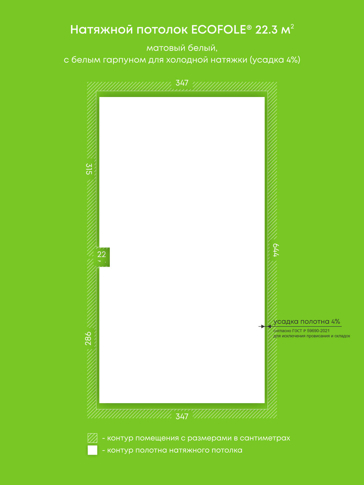 Натяжные потолки, изготовленные по индивидуальным размерам покупателя, для двух помещений площадью 16.3 м2, 22.3 м2