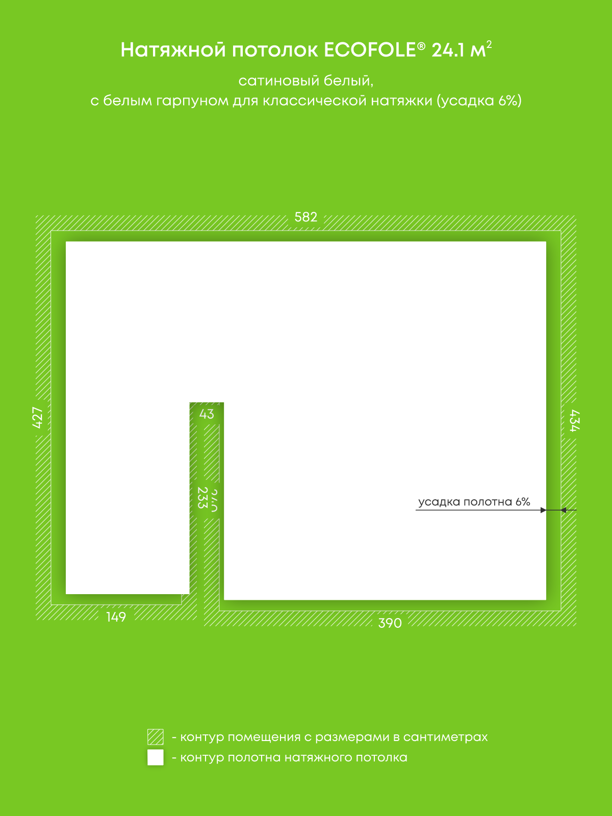 Натяжные потолки, изготовленные по индивидуальным размерам покупателя, для двух помещений площадью 16.5 м2, 24.1 м2