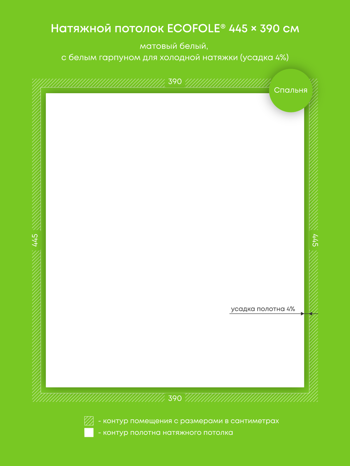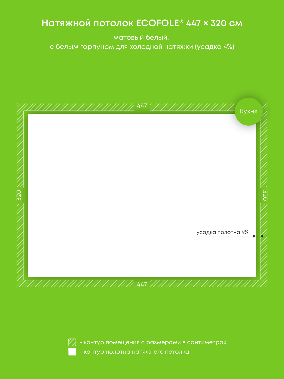 Натяжные потолки изготовленные по индивидуальным размерам покупателя, для четырех помещений площадью: 17.4 м2, 17.8 м2, 10.9 м2, 14.3 м2
