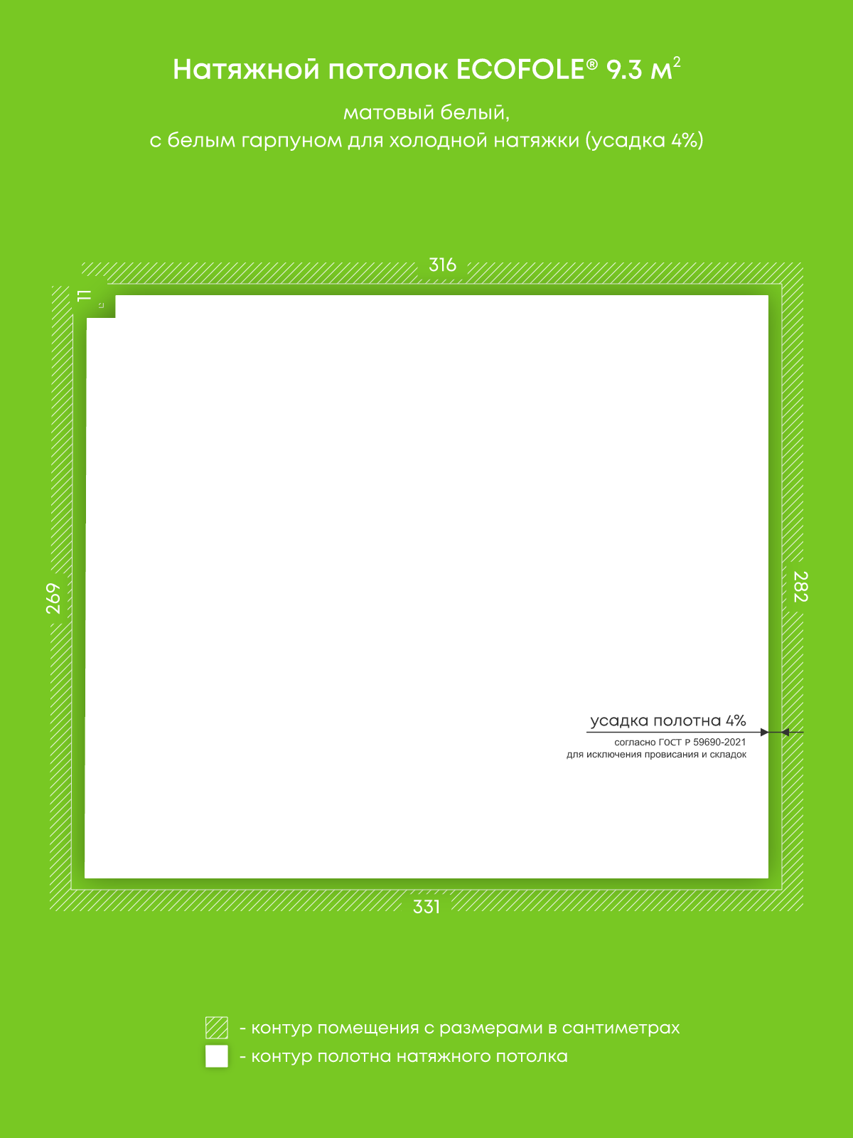Натяжные потолки, изготовленные по индивидуальным размерам покупателя, для двух помещений площадью 17.8 м2, 9.3 м2