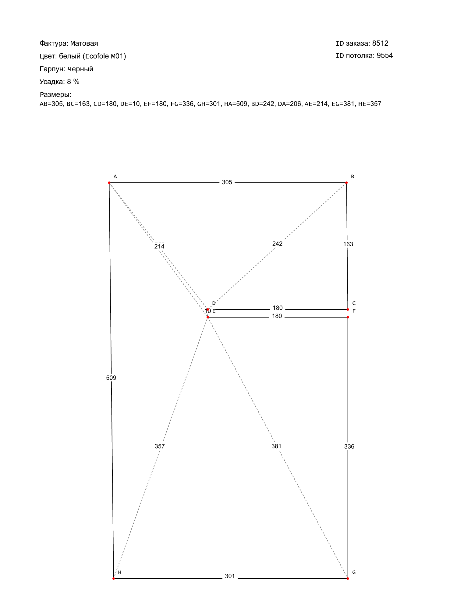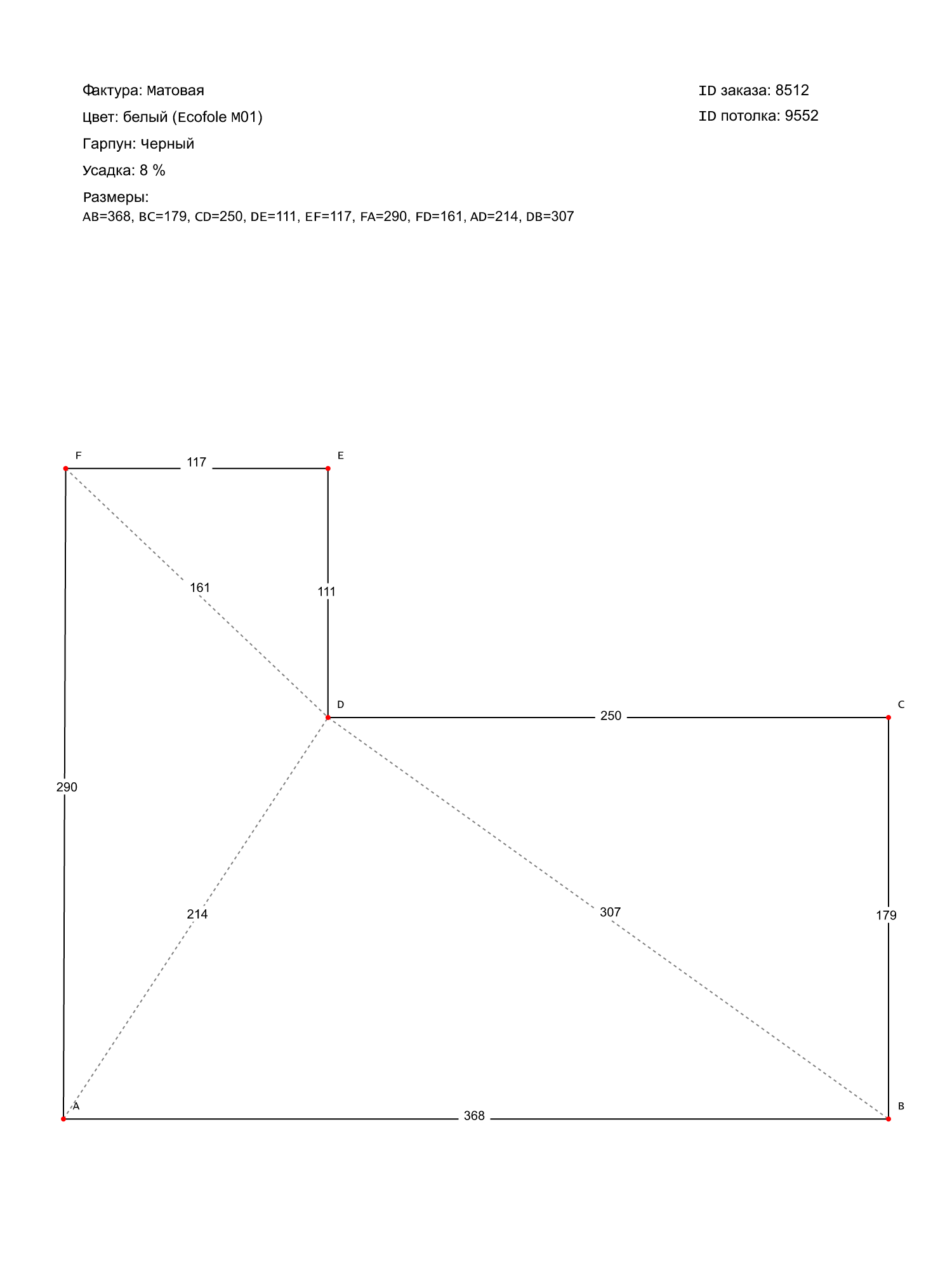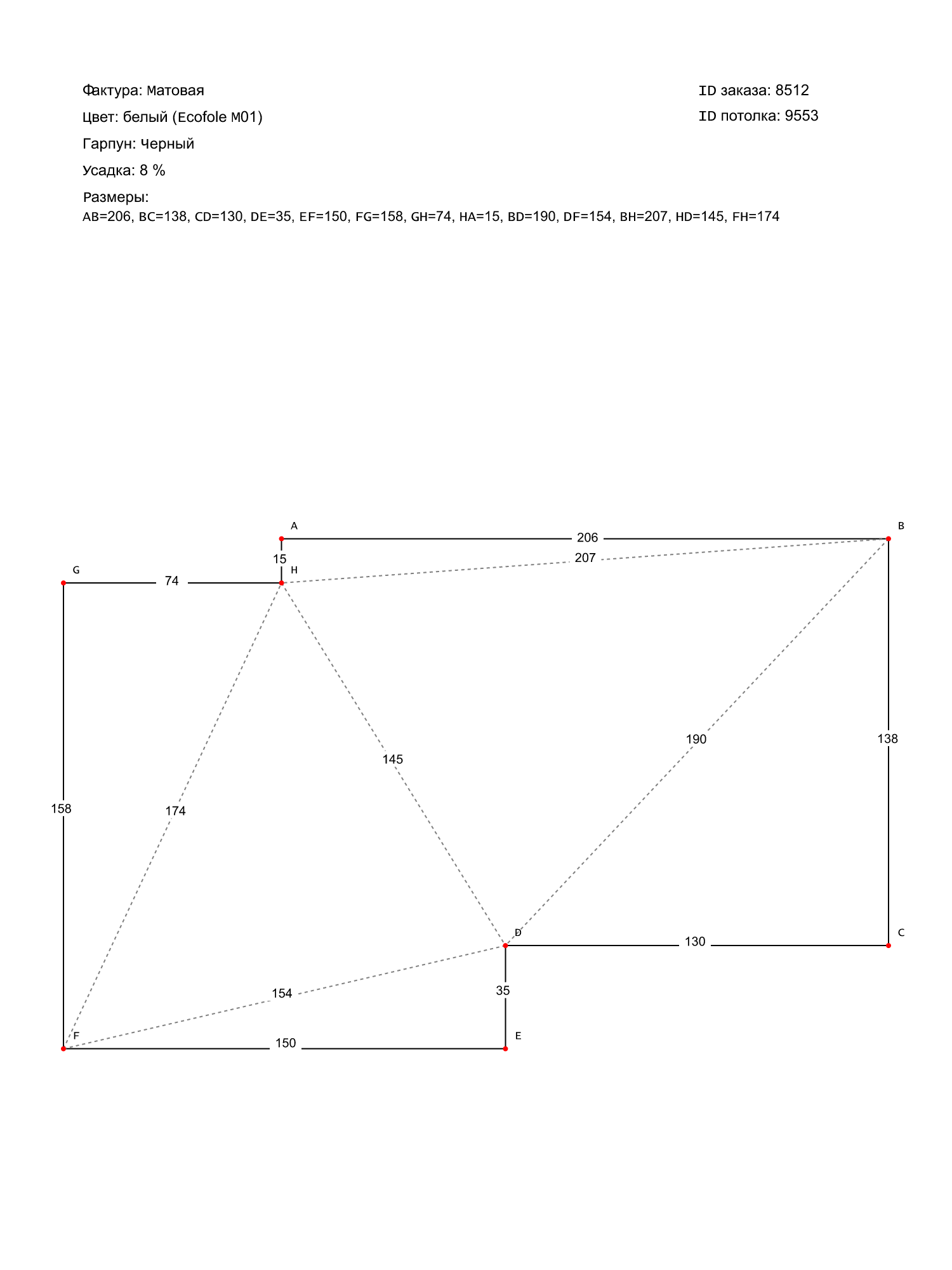 Натяжные потолки изготовленные по индивидуальным размерам покупателя, для четырех помещений площадью: 18.5 м2, 17.8 м2, 7.9 м2, 15.3 м2