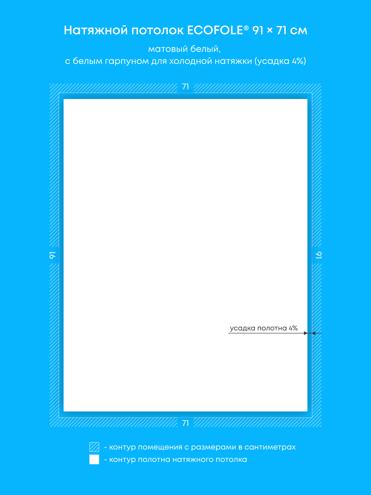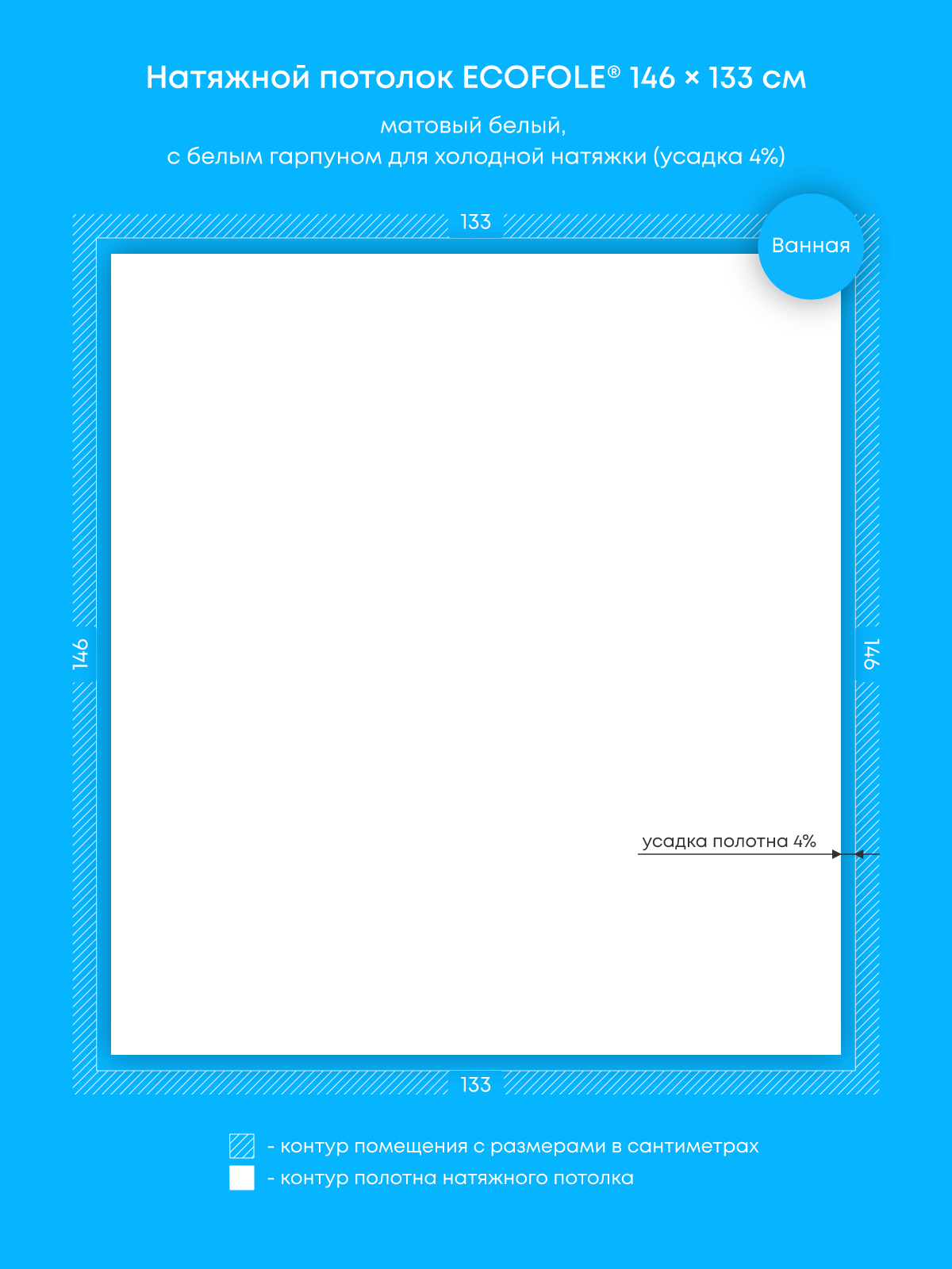 Натяжные потолки, изготовленные по индивидуальным размерам покупателя, для пяти помещений площадью 1.9 м2, 0.6 м2, 1.7 м2, 6.1 м2, 11.7 м2