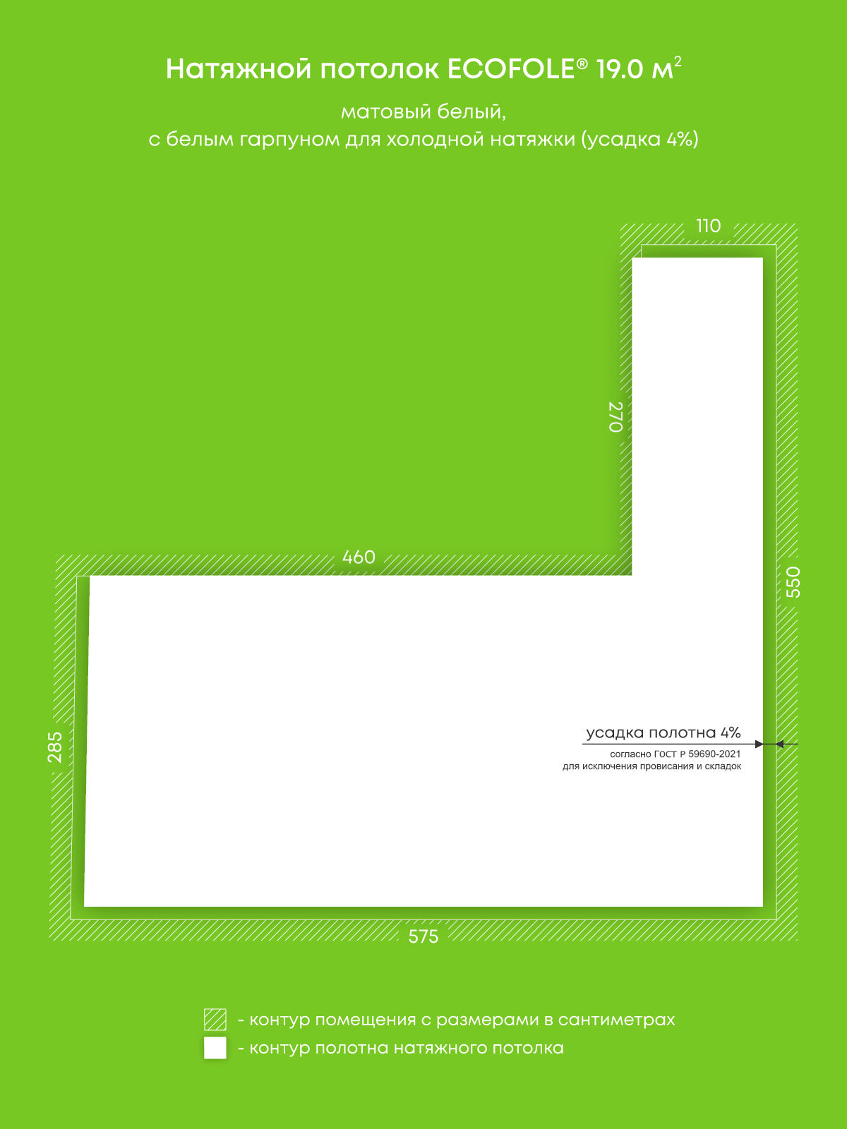 Натяжные потолки, изготовленные по индивидуальным размерам покупателя, для двух помещений площадью 19 м2, 11.2 м2