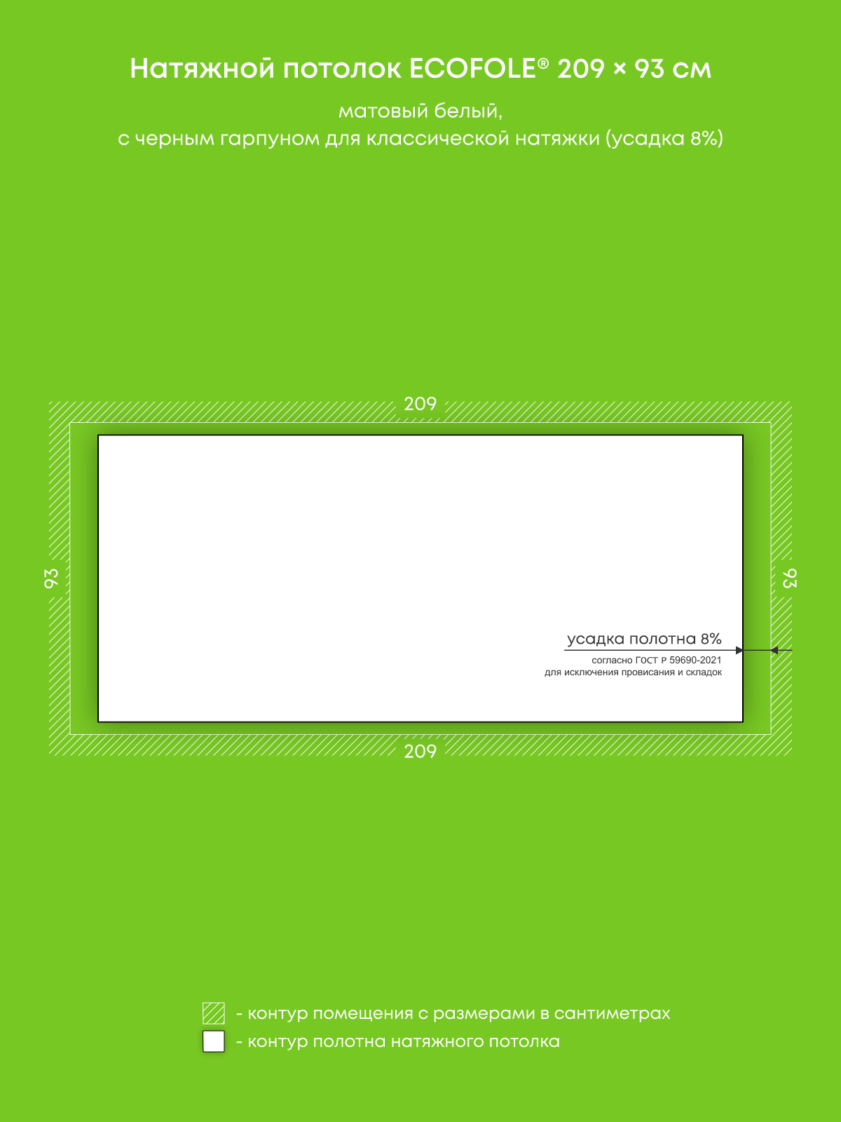 Натяжные потолки, изготовленные по индивидуальным размерам покупателя, для двух помещений площадью 1.9 м2, 7.2 м2