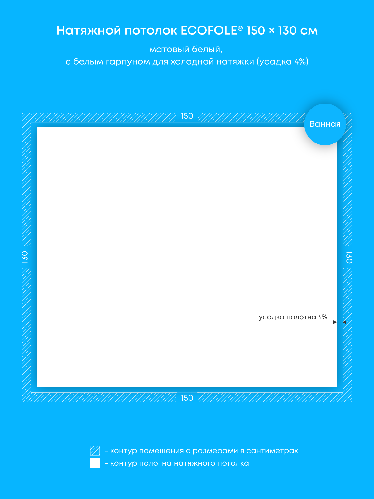 Натяжные потолки, изготовленные по индивидуальным размерам покупателя, для двух помещений площадью 2 м2, 1.3 м2