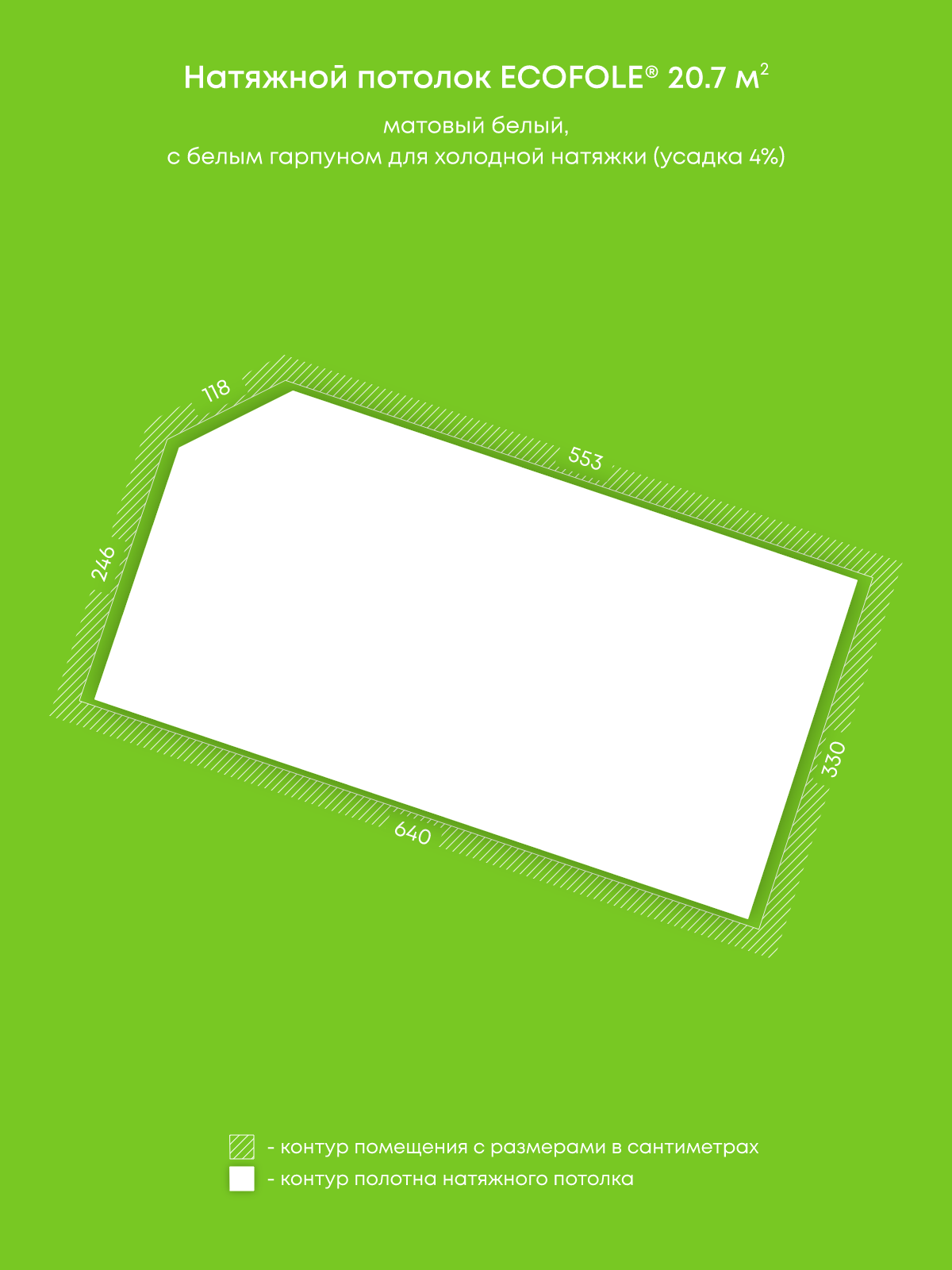 Натяжные потолки 20.7 м2, 15.6 м2, 5.6 м2