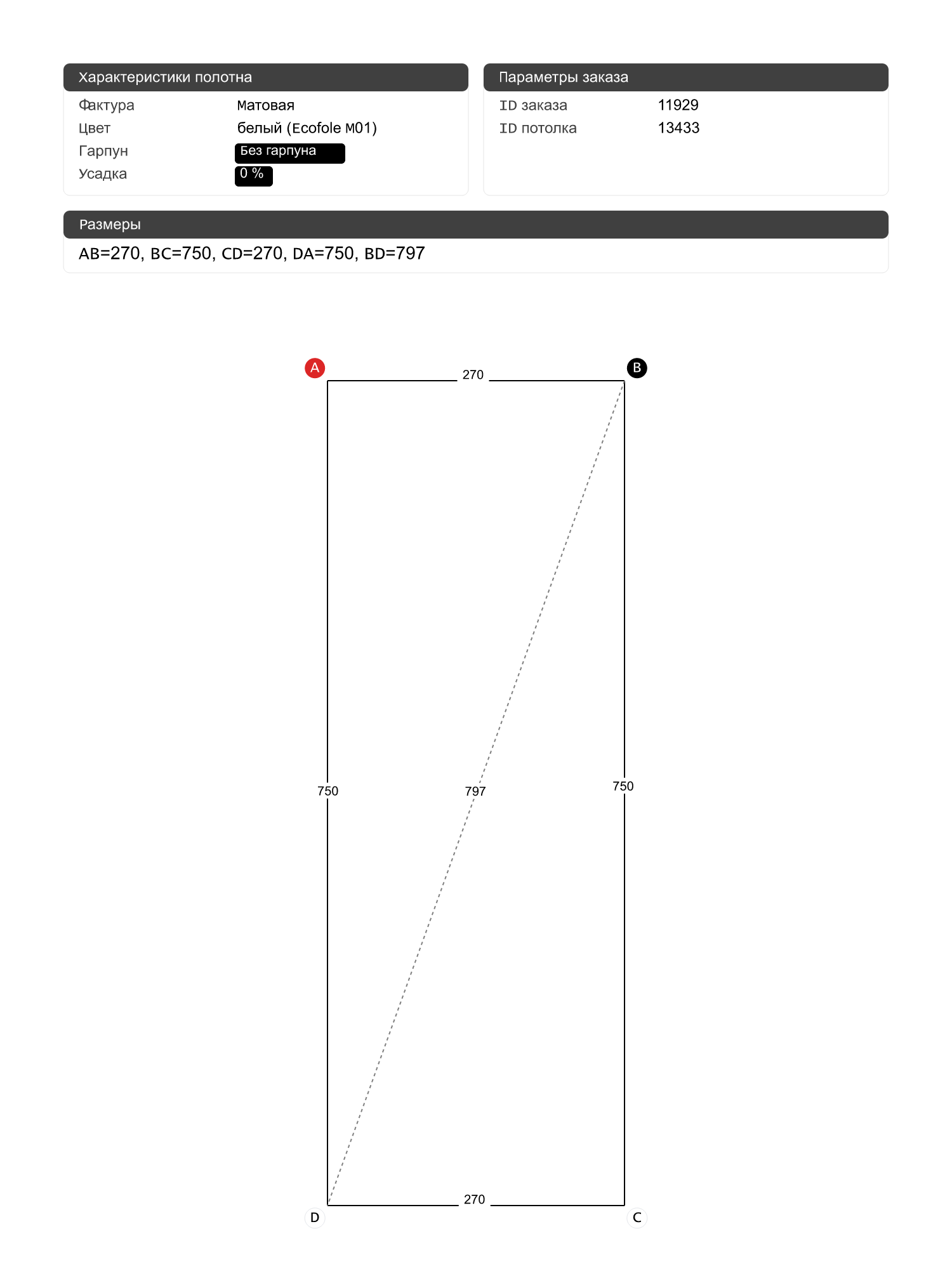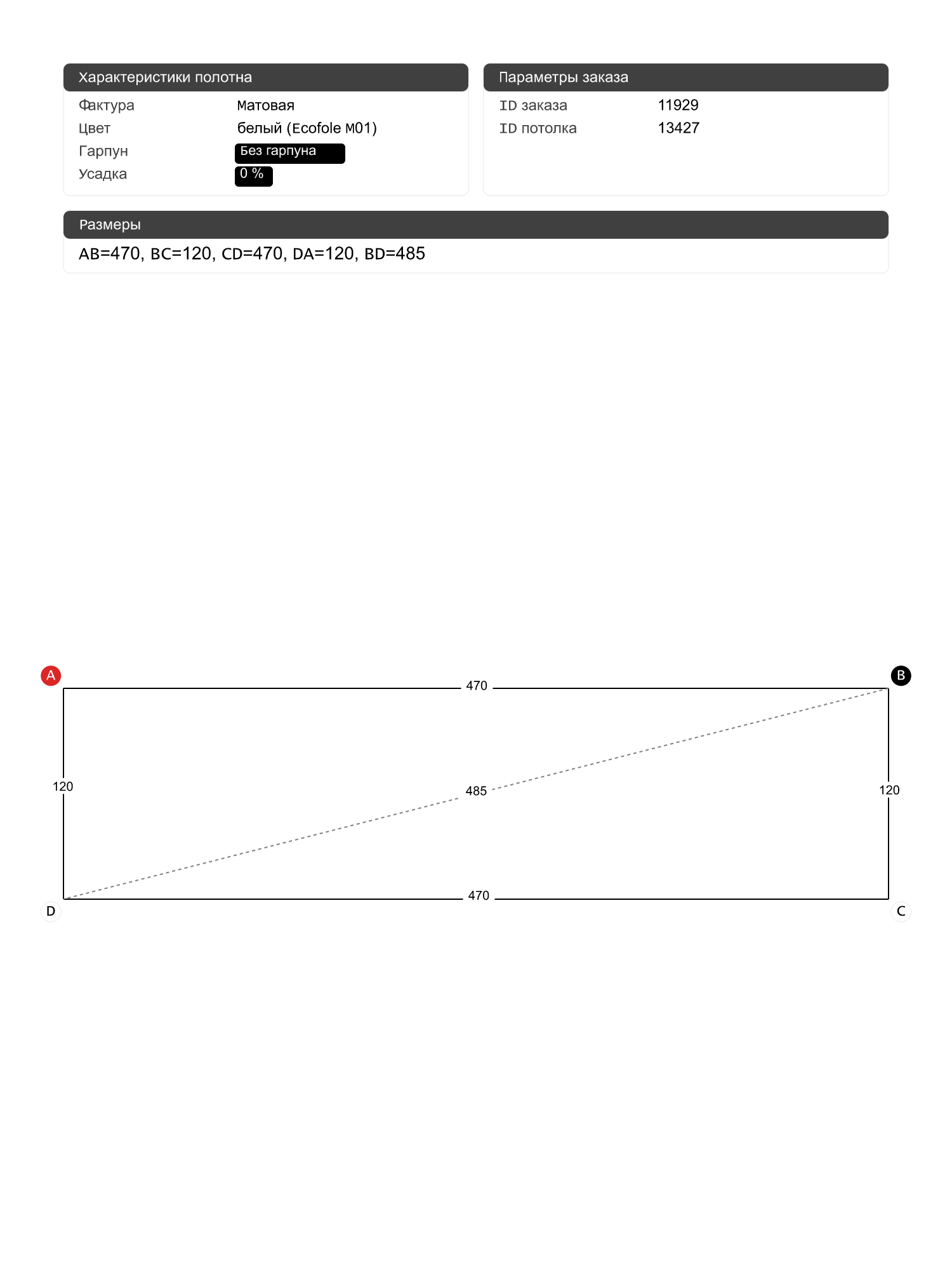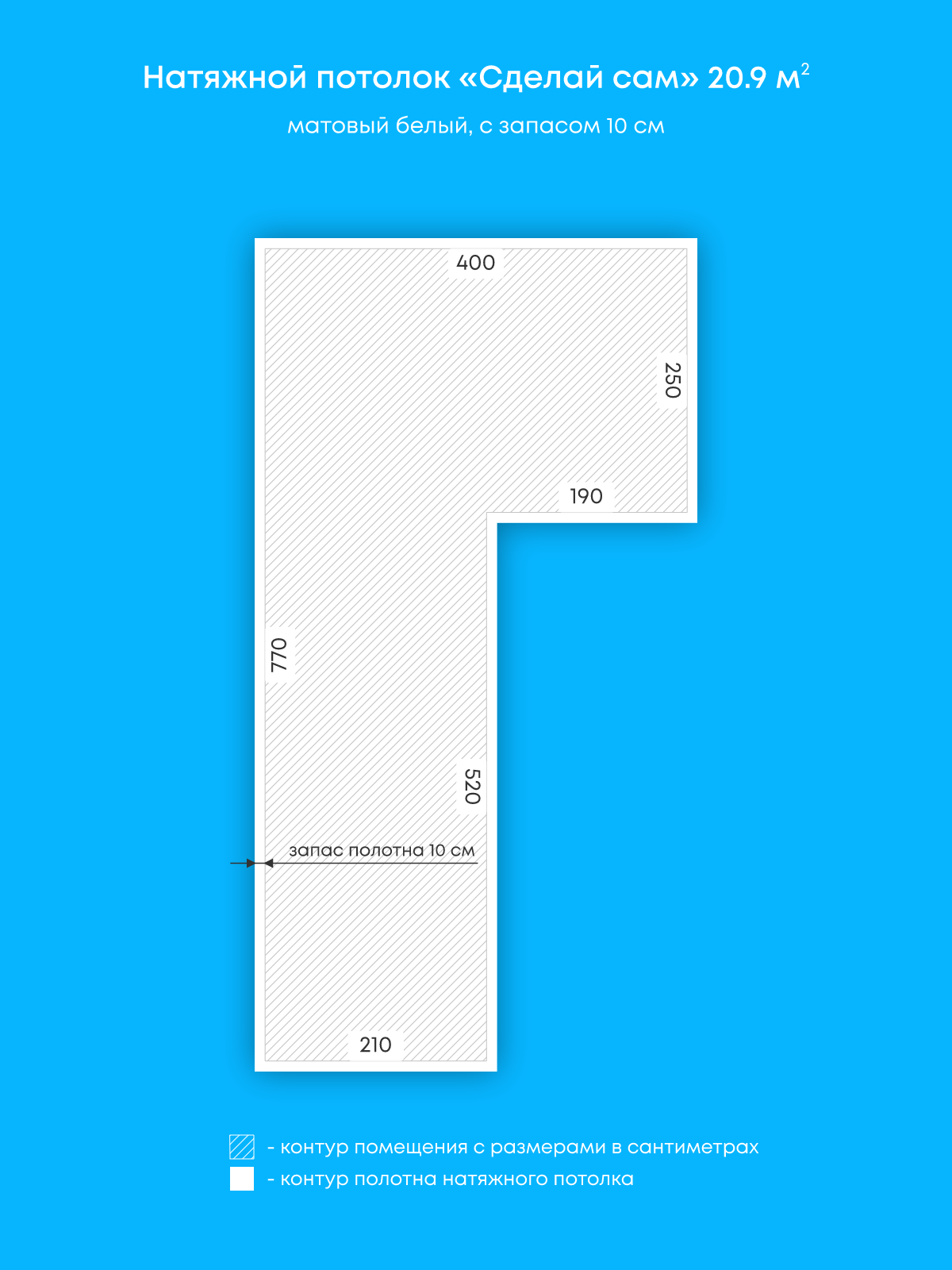 Натяжные потолки изготовленные по индивидуальным размерам покупателя, для двух помещений площадью: 20.9 м2, 18.3 м2