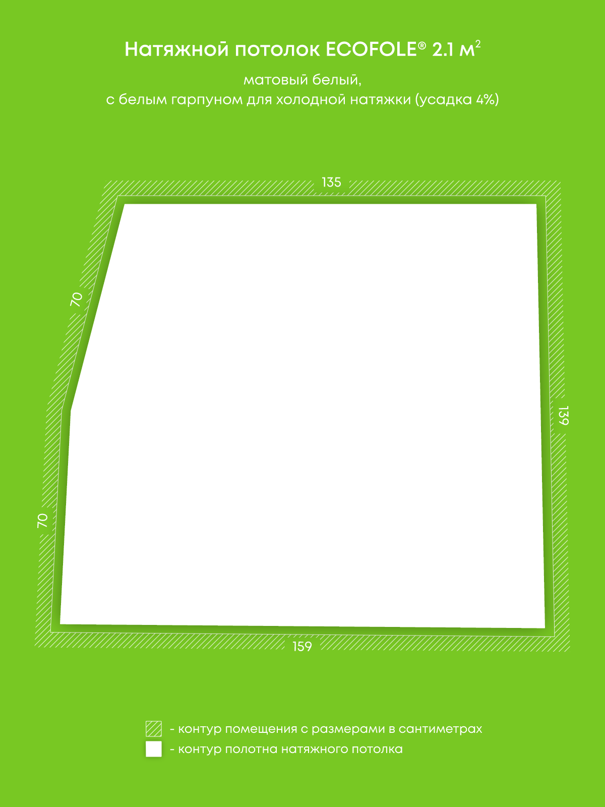 Натяжные потолки, изготовленные по индивидуальным размерам покупателя, для двух помещений площадью 2.1 м2, 0.9 м2