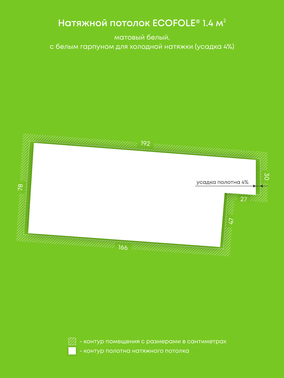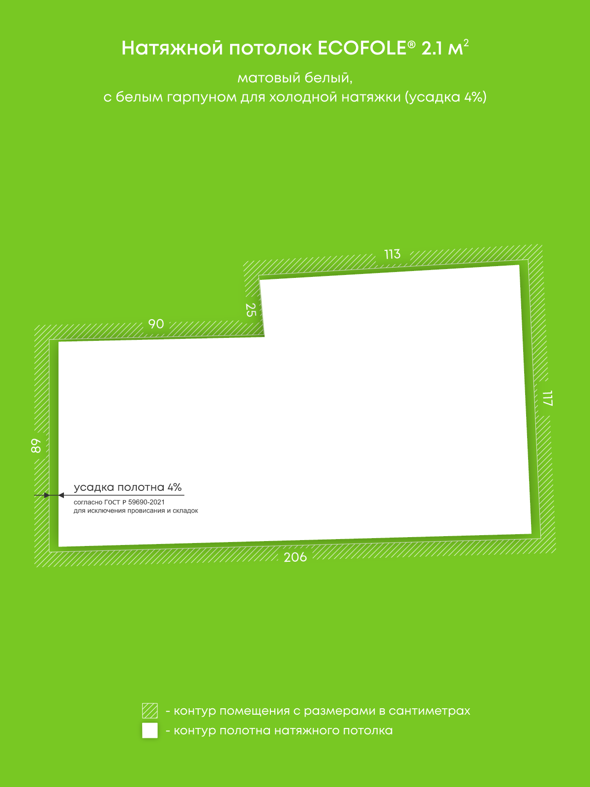 Натяжные потолки, изготовленные по индивидуальным размерам покупателя, для двух помещений площадью 2.1 м2, 1.4 м2