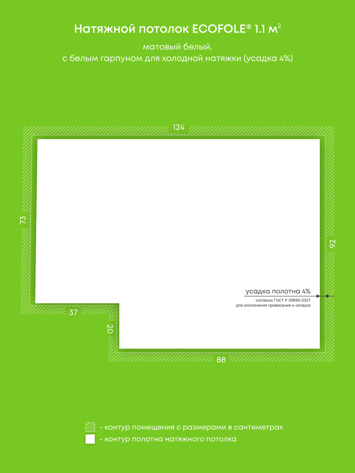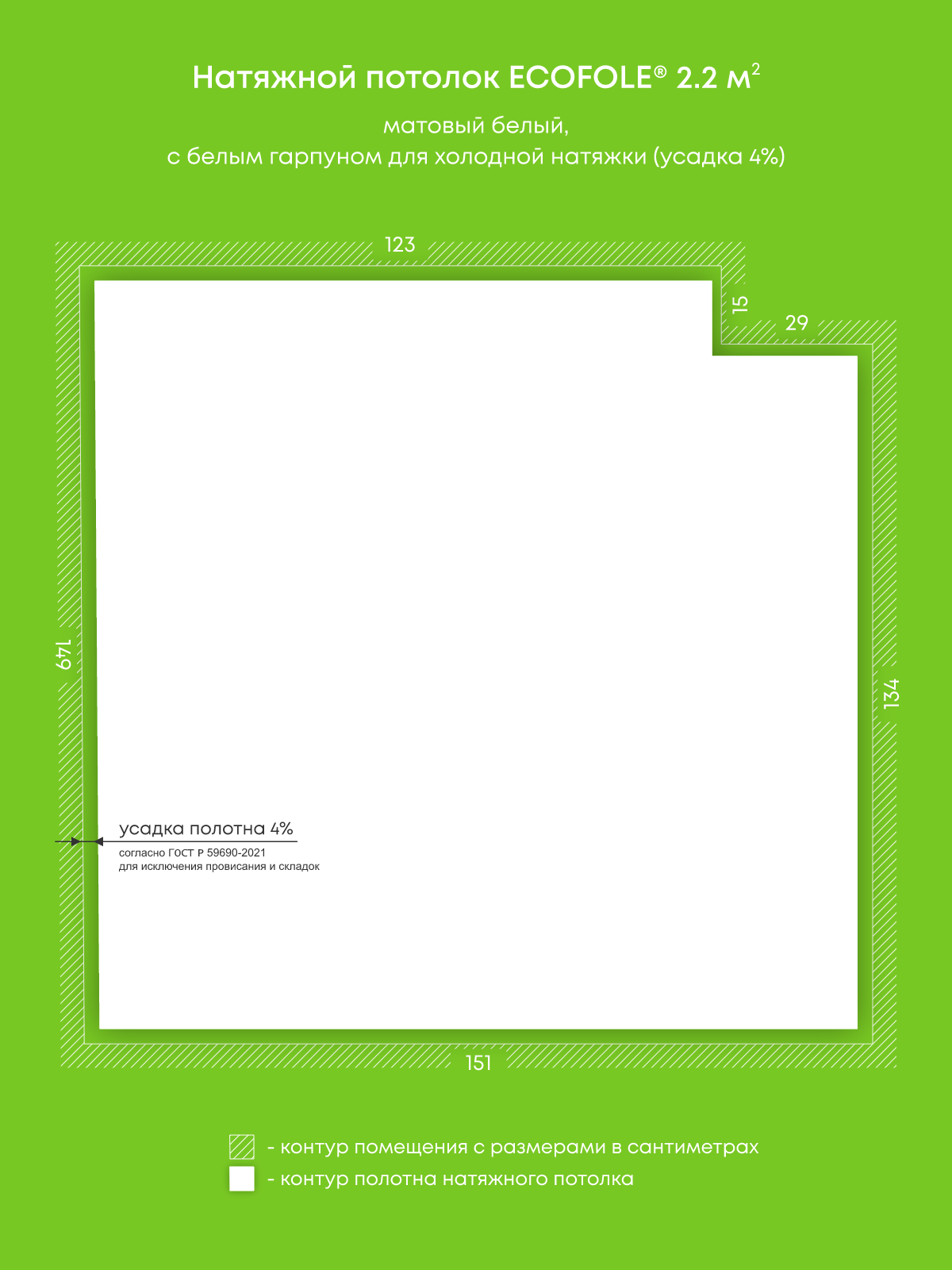 Натяжные потолки, изготовленные по индивидуальным размерам покупателя, для двух помещений площадью 2.2 м2, 1.1 м2