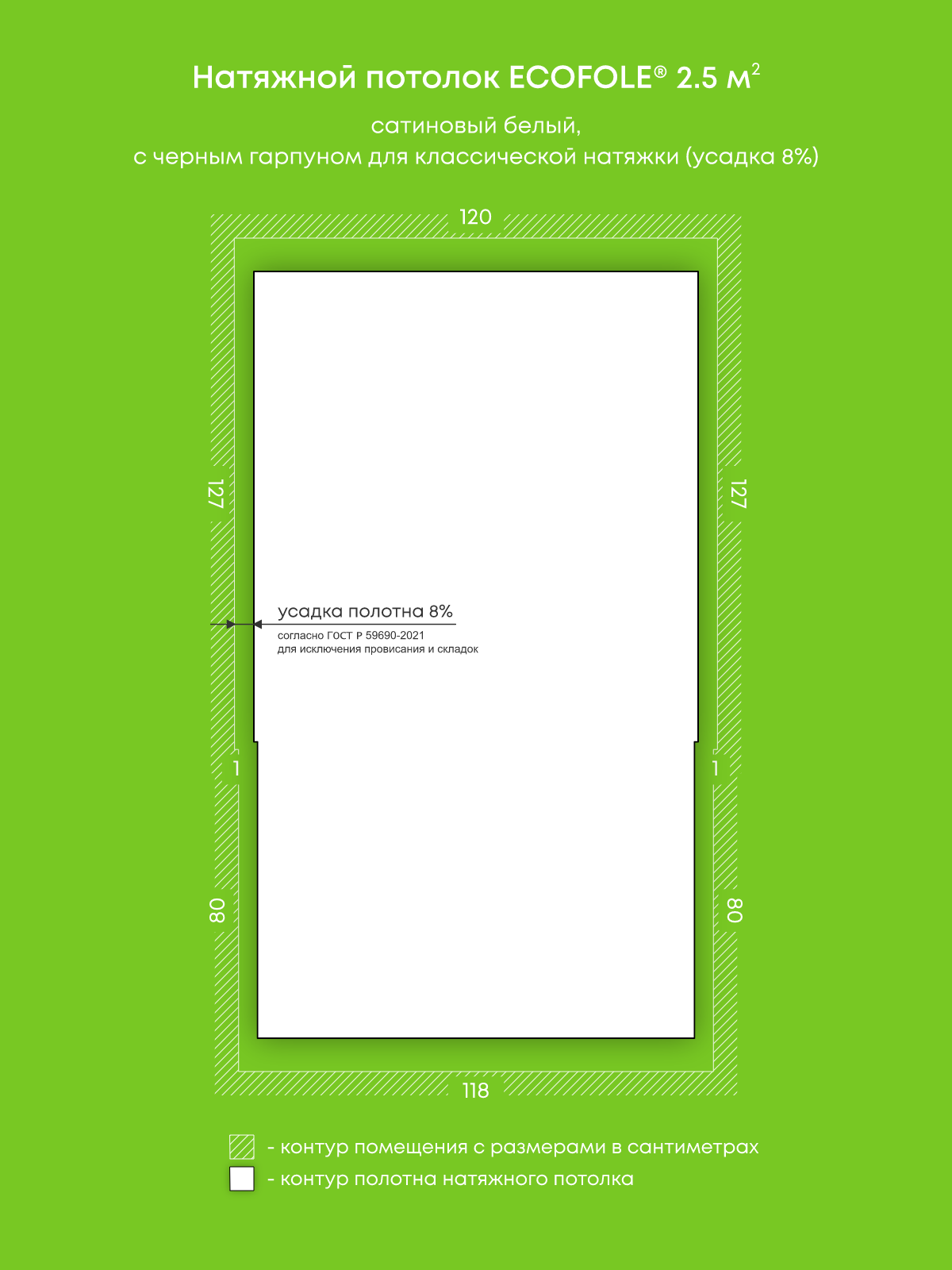Натяжные потолки, изготовленные по индивидуальным размерам покупателя, для двух помещений площадью 22.2 м2, 2.5 м2