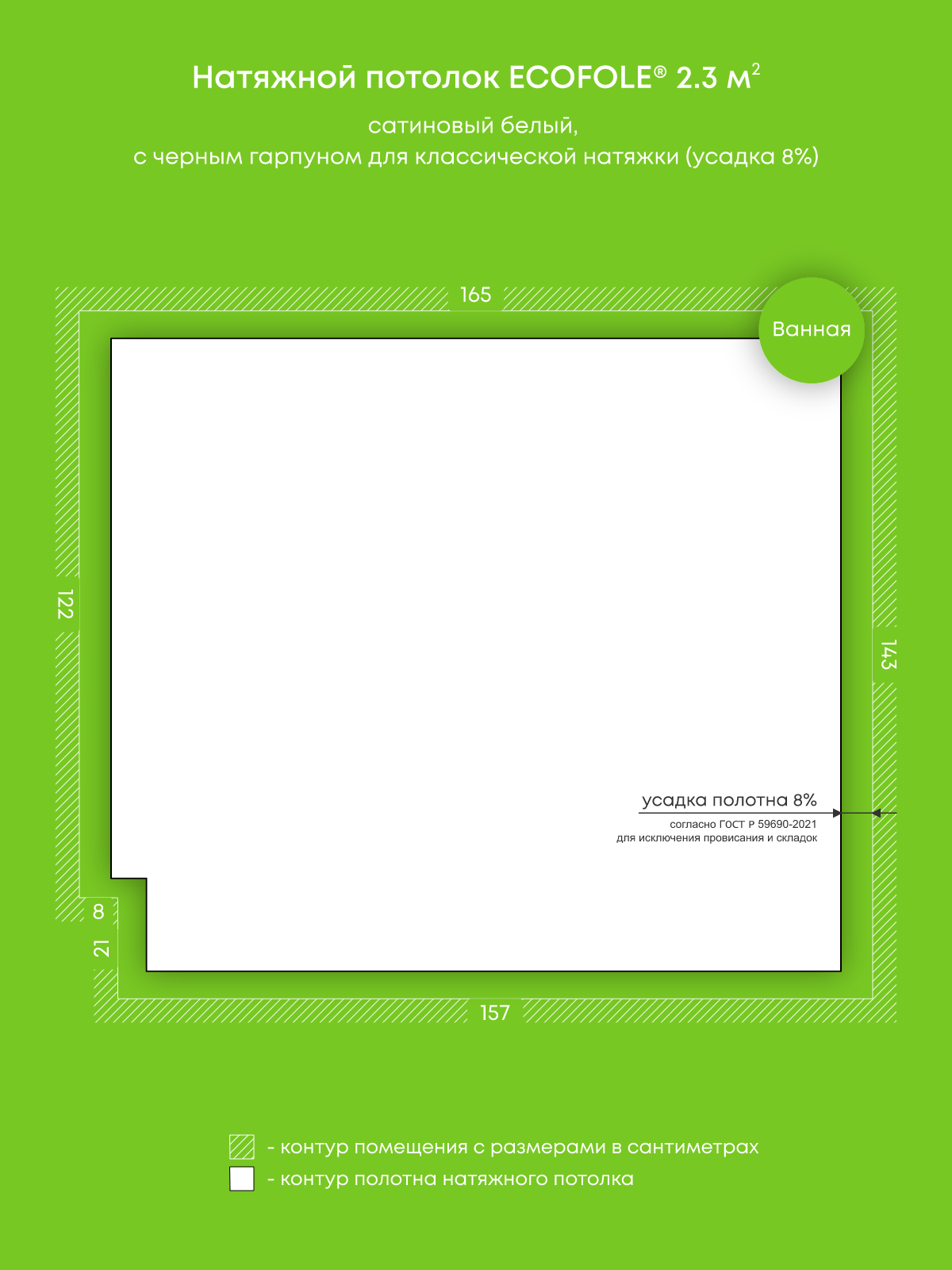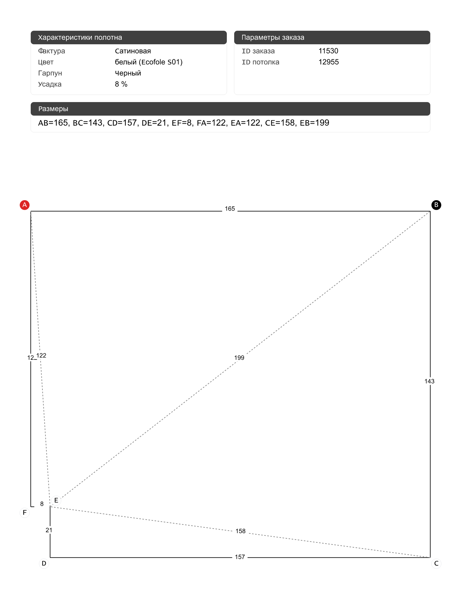 Натяжные потолки изготовленные по индивидуальным размерам покупателя, для трех помещений площадью: 2.3 м2, 11 м2, 0.8 м2