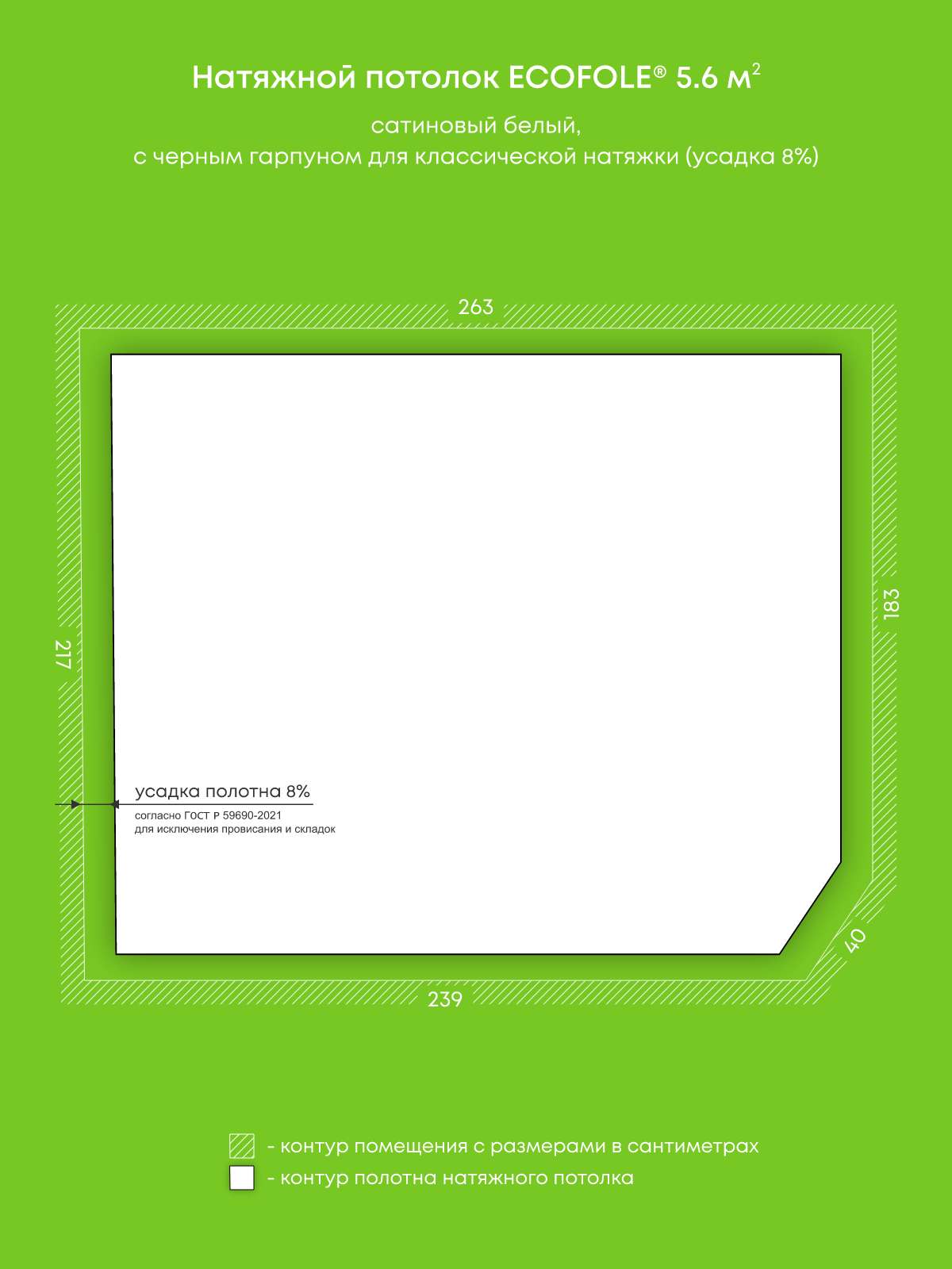 Натяжные потолки, изготовленные по индивидуальным размерам покупателя, для двух помещений площадью 24.4 м2, 5.6 м2