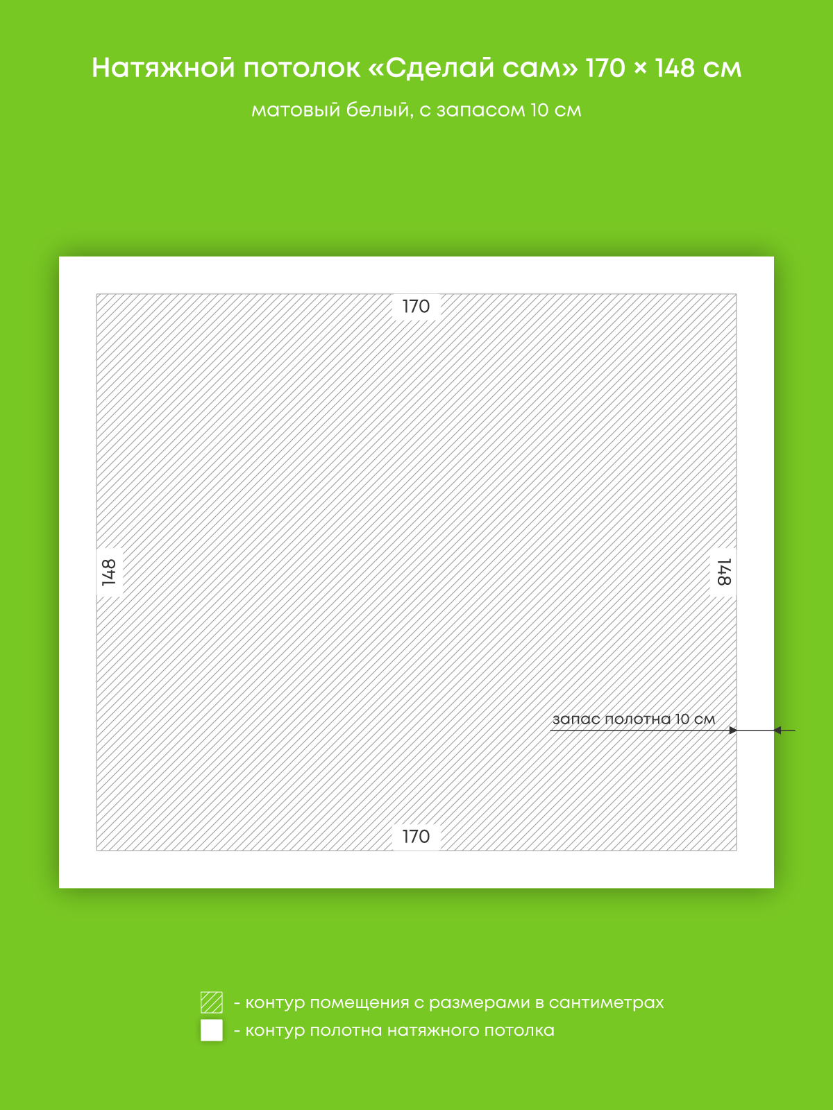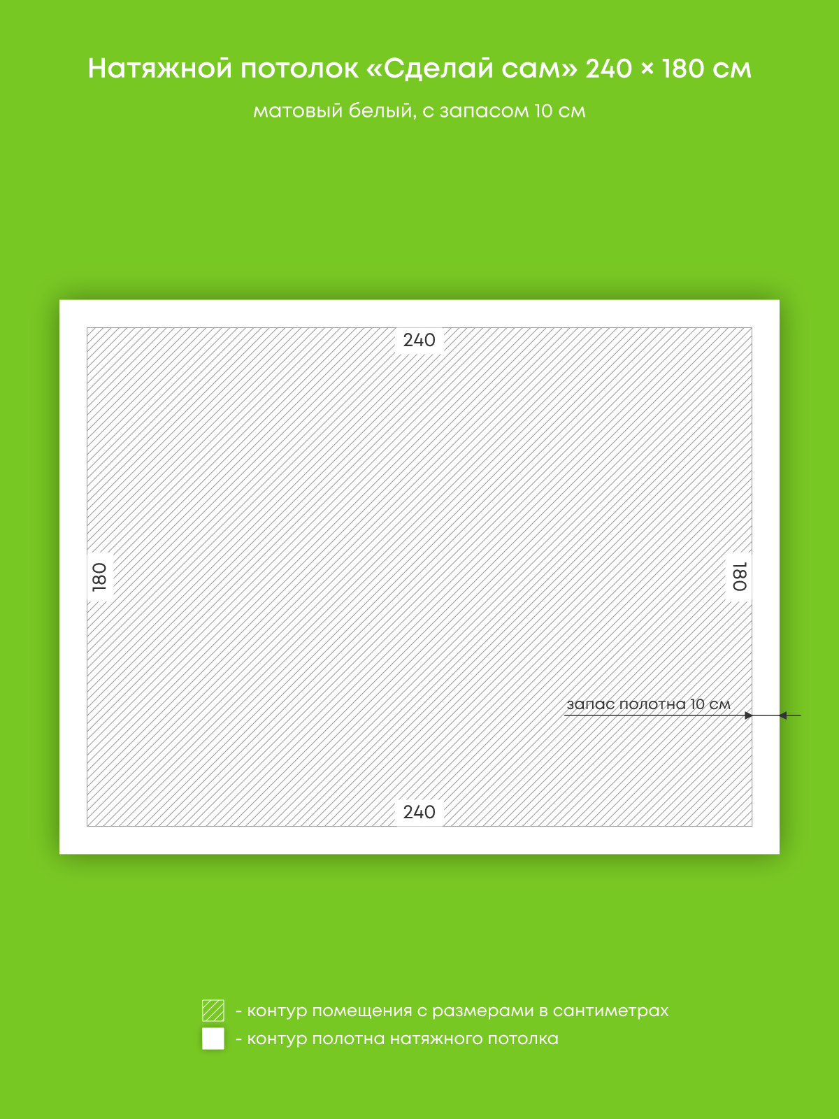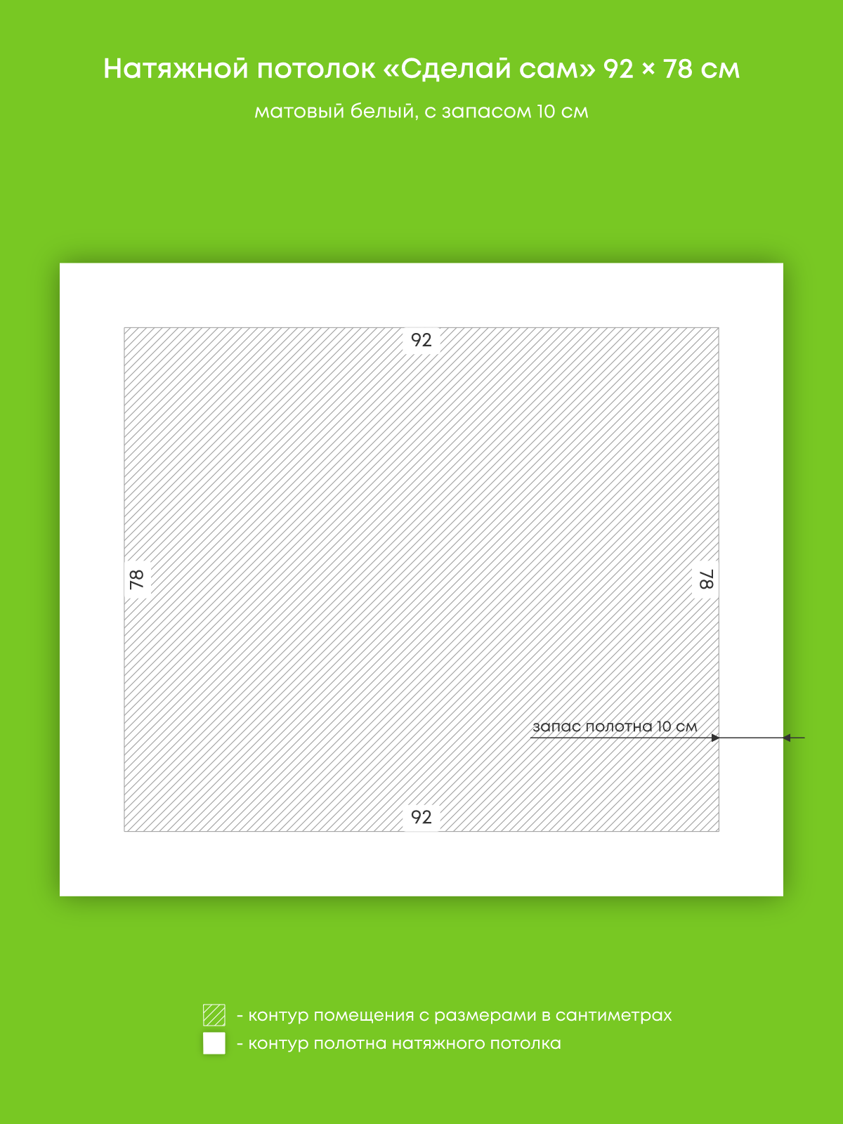 Натяжные потолки, изготовленные по индивидуальным размерам покупателя, для трех помещений площадью 2.5 м2, 0.7 м2, 4.3 м2