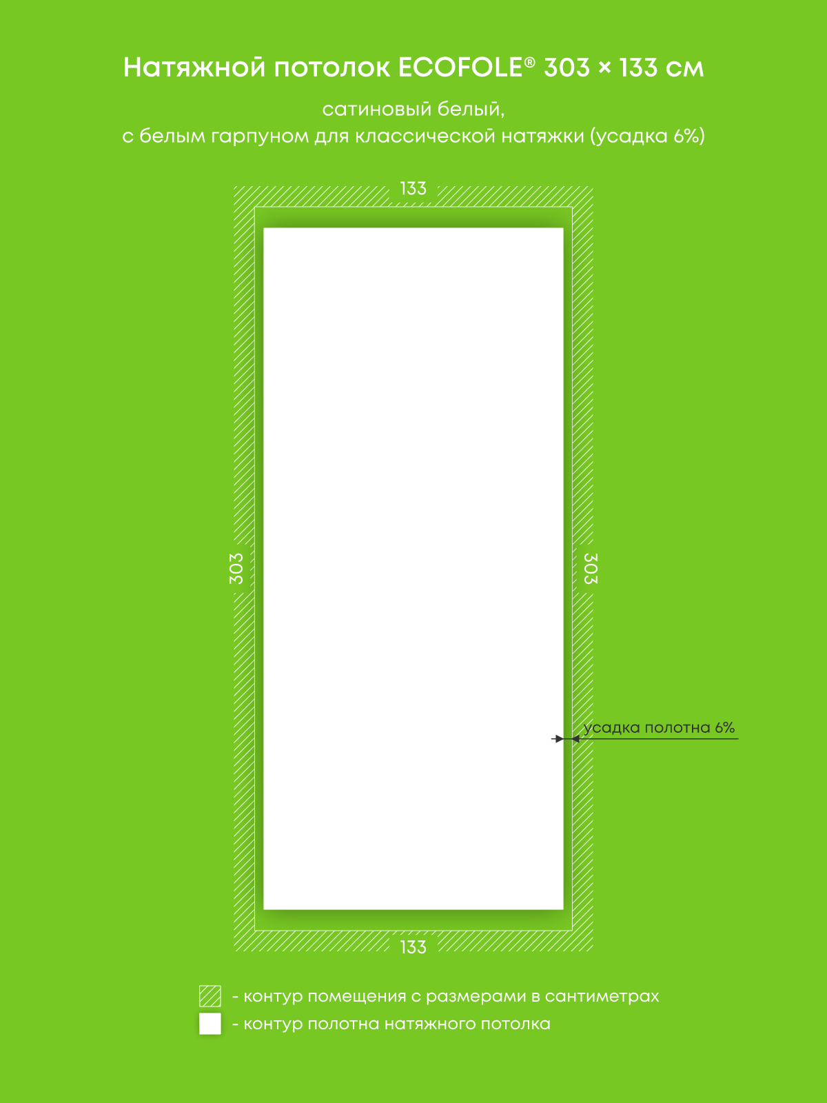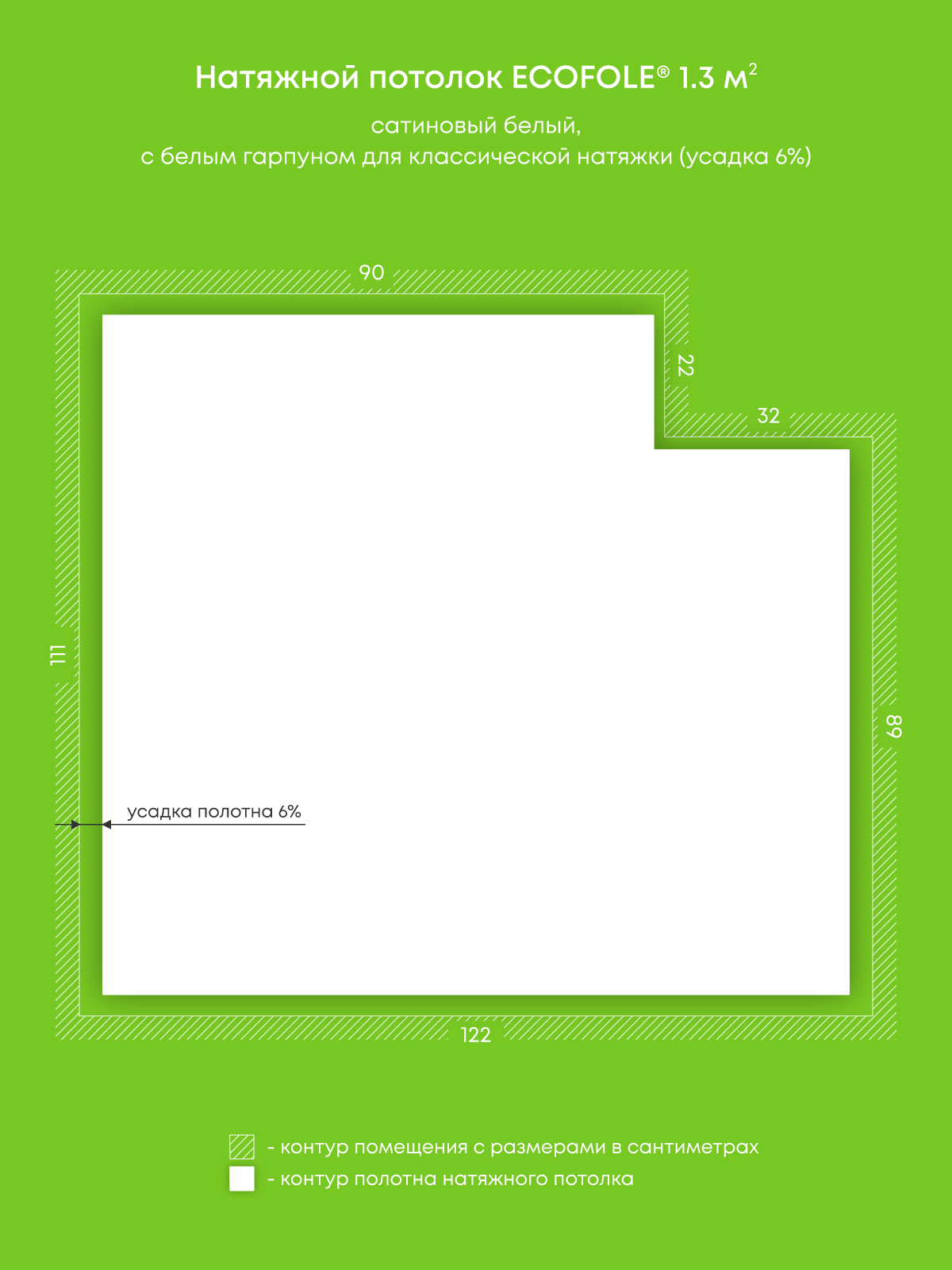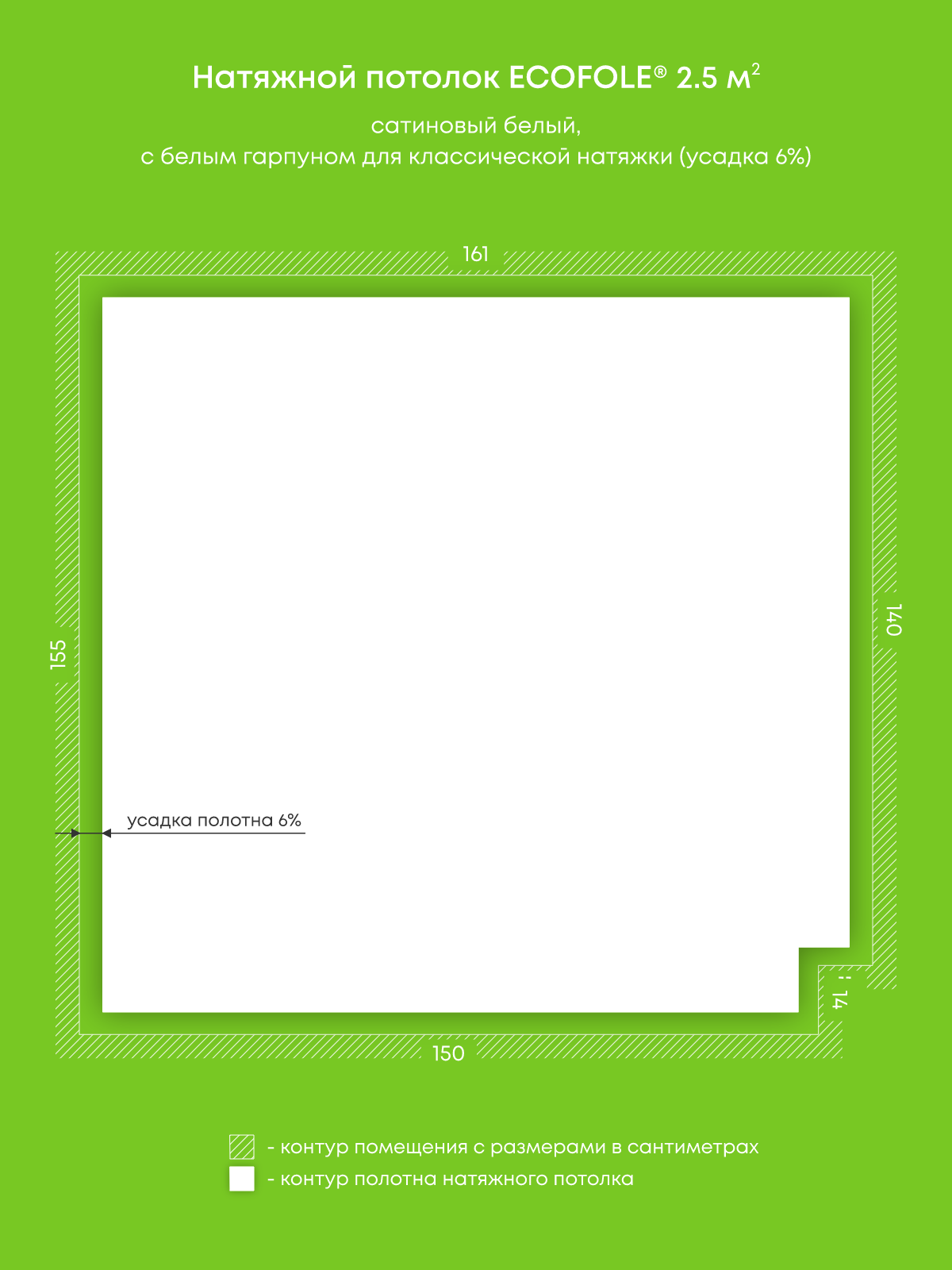 Натяжные потолки, изготовленные по индивидуальным размерам покупателя, для пяти помещений площадью 2.5 м2, 1.3 м2, 4 м2, 4 м2, 3.9 м2